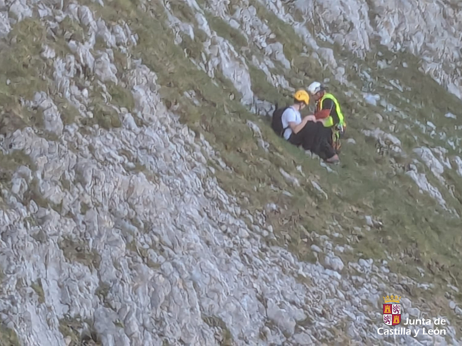Desde el centro coordinador de emergencias, se activó el helicóptero del Grupo de Rescate y Salvamento de la Junta de Castilla y León, que una vez en la zona y localizado al montañero accidentado, facilitó mediante vuelo estacionario el descenso de uno de los rescatadores.
