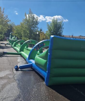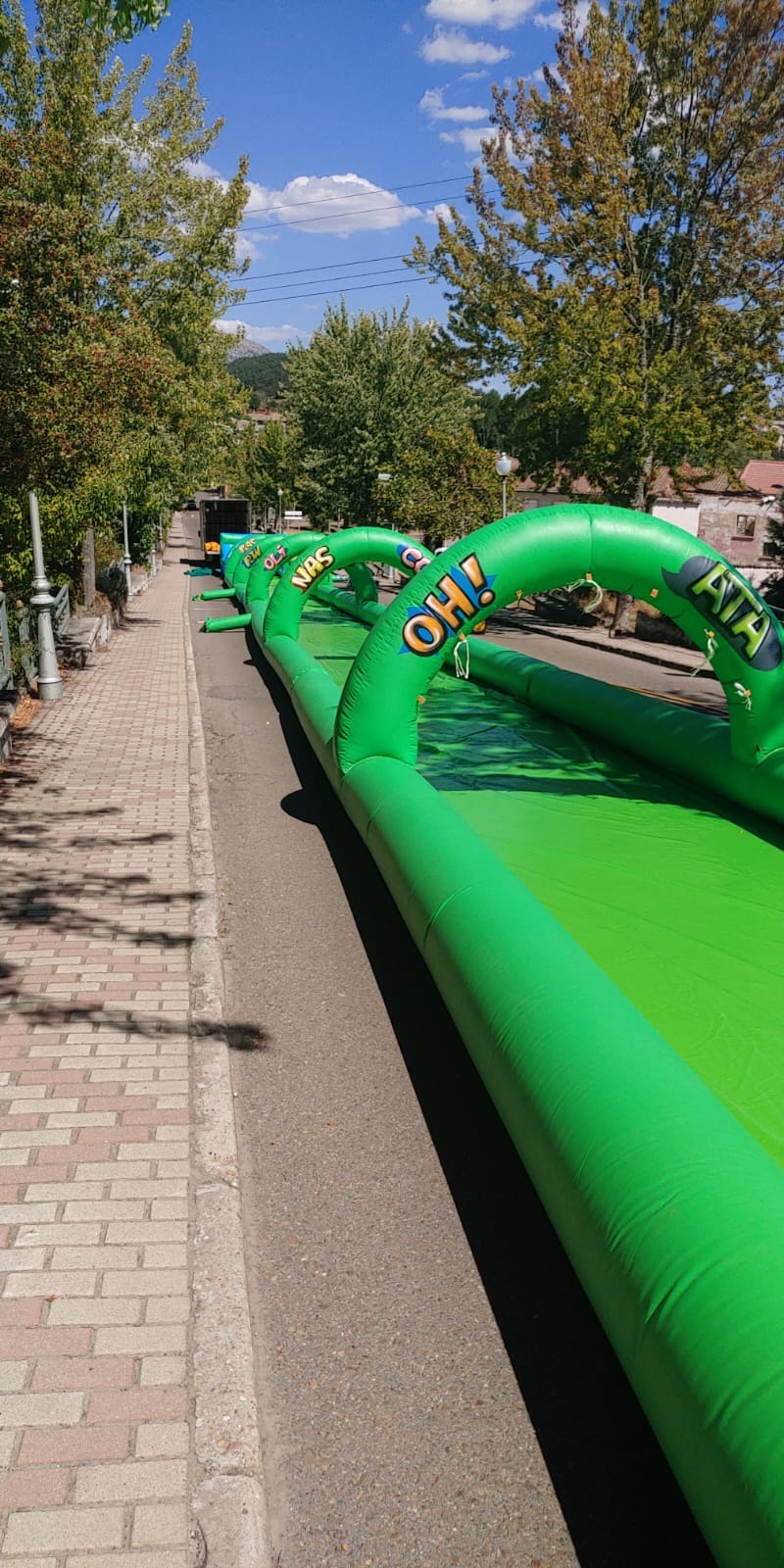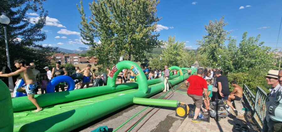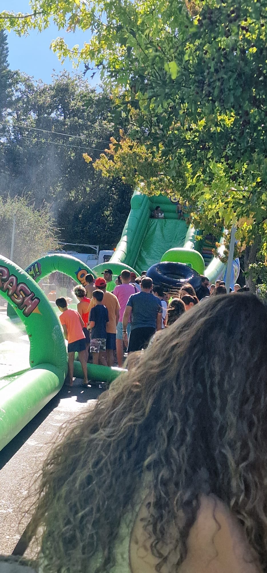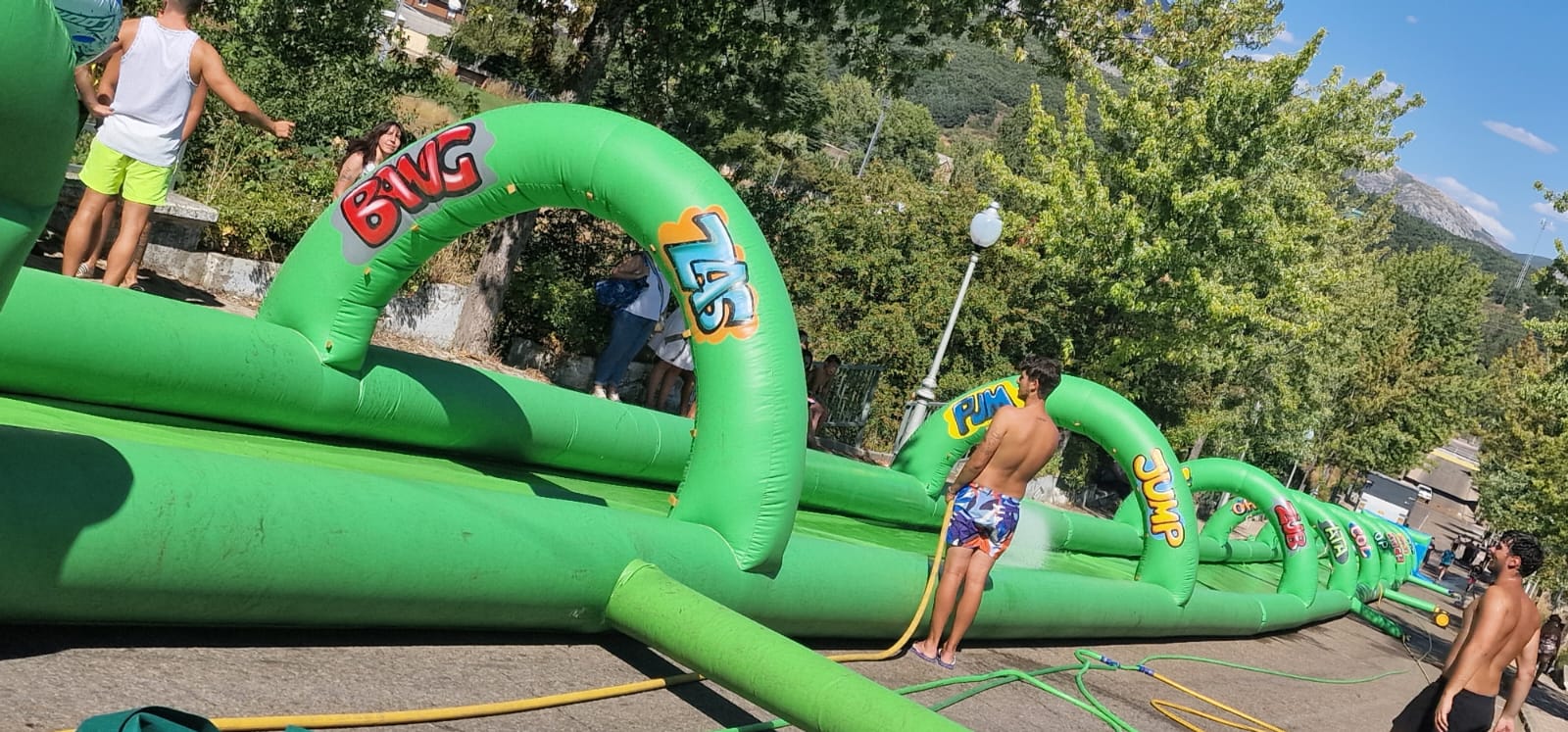 Todo ello ante la ansiosa mirada de los más pequeños, pero “también hay gente mayor, no te creas”, que habían decidido luchar contra el sofocante calor de la cuarta ola del verano mojándose y tomando velocidad por los 125 metros de tobogán instalado en la avenida de San Isidro. Una ubicación perfecta, gracias a la inclinación del terreno en la misma. “Se ha echado más agua, y también más jabón. A los pequeños, les cuesta coger velocidad, pero los mayores, sí que van rápido”. Al final del recorrido y casi de la calle, les espera una piscina para frenar su refrescante avance.