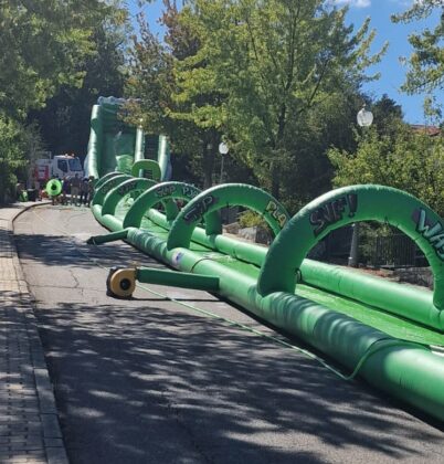 La localidad instala un tobogán acuático de 125 metros para combatir las temperaturas y pasar un buen rato