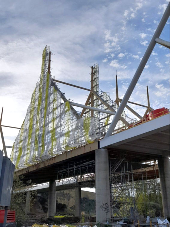 En segundo lugar, está contemplada una protección anticorrosiva, consistente en el lavado con agua a presión y chorreo de arena de sílice para eliminar el revestimiento preexistente. A continuación, una capa de imprimación a base de resina ‘epoxi’ enriquecida con zinc, otra de impermeabilización y una última de poliuretano de altas prestaciones para proteger el metal de los rayos ultravioletas y las inclemencias meteorológicas. Con ello se consigue una alta durabilidad, prefijada entre los 15 y los 25 años, y una resistencia a la corrosión extrema, similar a la de los barcos.