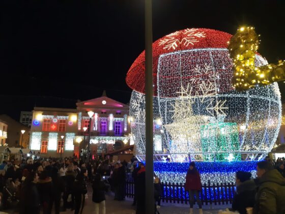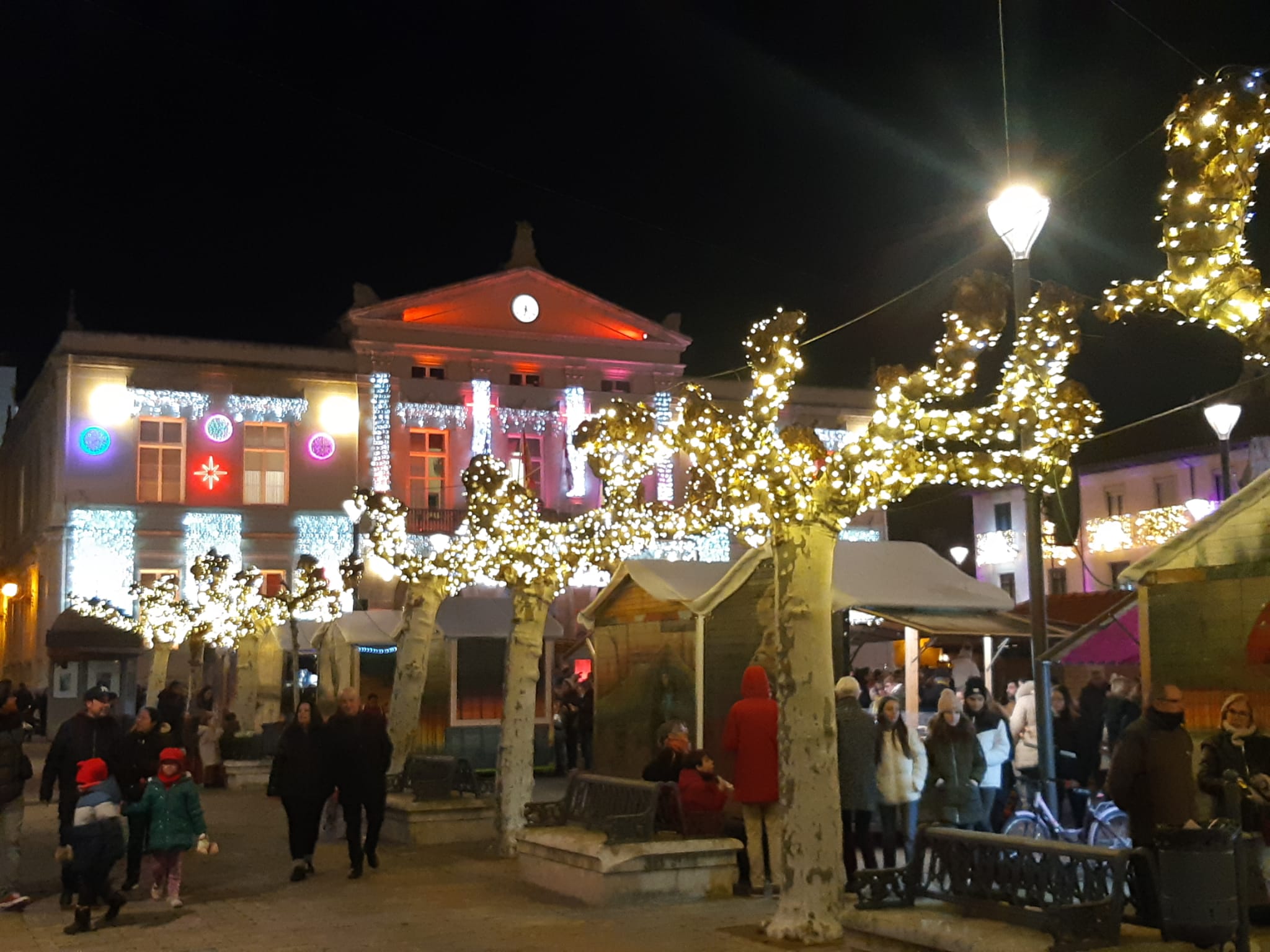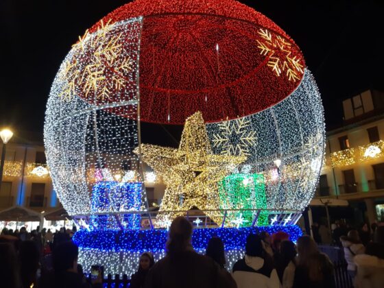 En la Plaza Mayor, se ha decorado la fachada del Ayuntamiento con un cartel de “Feliz Navidad” y los balcones adyacentes se iluminan con luces de colores cálidos y motivos festivos. Junto al tradicional belén, se ha instalado una bola gigante navideña. Como novedad este año, la Plaza de Abastos mostrará un gran cartel de “Felicidades” en una de sus puertas de entrada, en honor a su 125 aniversario.