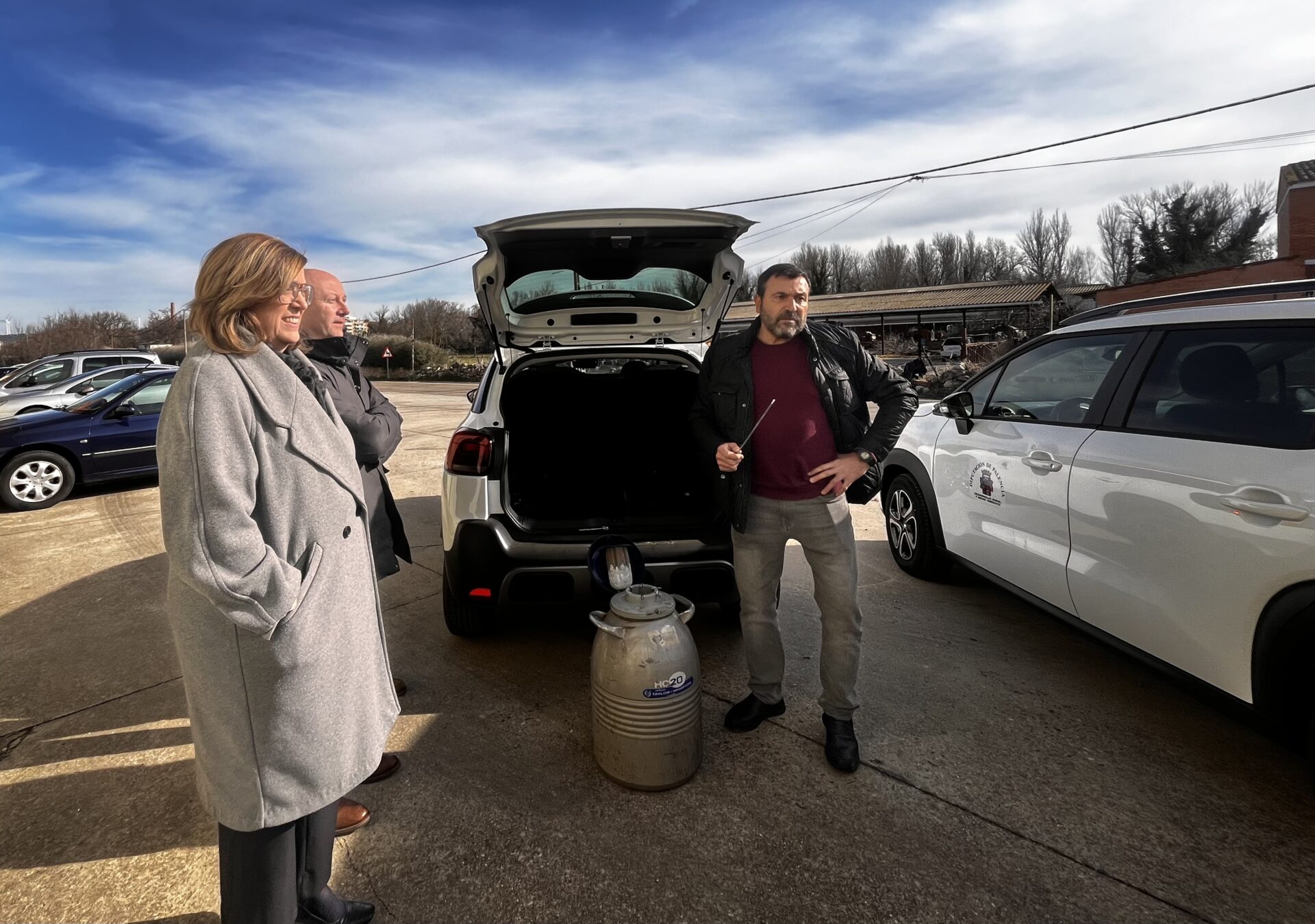 La presidenta de la Diputación, Ángeles Armisén, junto al diputado de Desarrollo Agrario, Luis Calderón, ha presentado esta mañana los nuevos vehículos asignados al servicio de Inseminación Artificial con los que se renovará la flota que utilizan los técnicos que desarrollan esta prestación y que cumple una tarea fundamental en el mantenimiento de la actividad ganadera en la provincia ya que llegan a localidades muy alejadas o con explotaciones tan pequeñas que el coste de la prestación no sería rentable sino lo prestara la Institución.