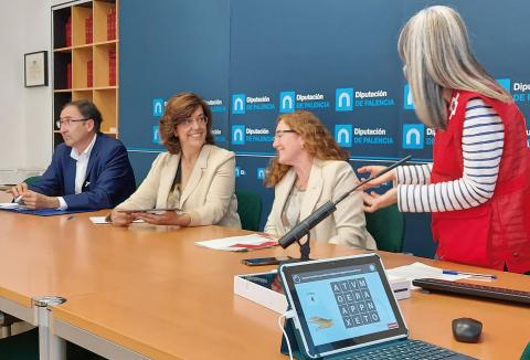 La presidenta de la Diputación de Palencia, Ángeles Armisén, y la presidenta provincial de Cruz Roja, Eva Alemañ, han presentado esta mañana este servicio, en una rueda de prensa en la que también han participado el diputado delegado del Área de Servicios Sociales, Alfonso Polanco; y la secretaria de la oenegé en Palencia, Montserrat Juanes. Tanto Armisén como Alemañ han valorado positivamente la implantación de este novedoso programa, que supone una mejora en la calidad de vida de las personas mayores en su proceso de envejecimiento, aprovechando las posibilidades que ofrecen las nuevas tecnologías.