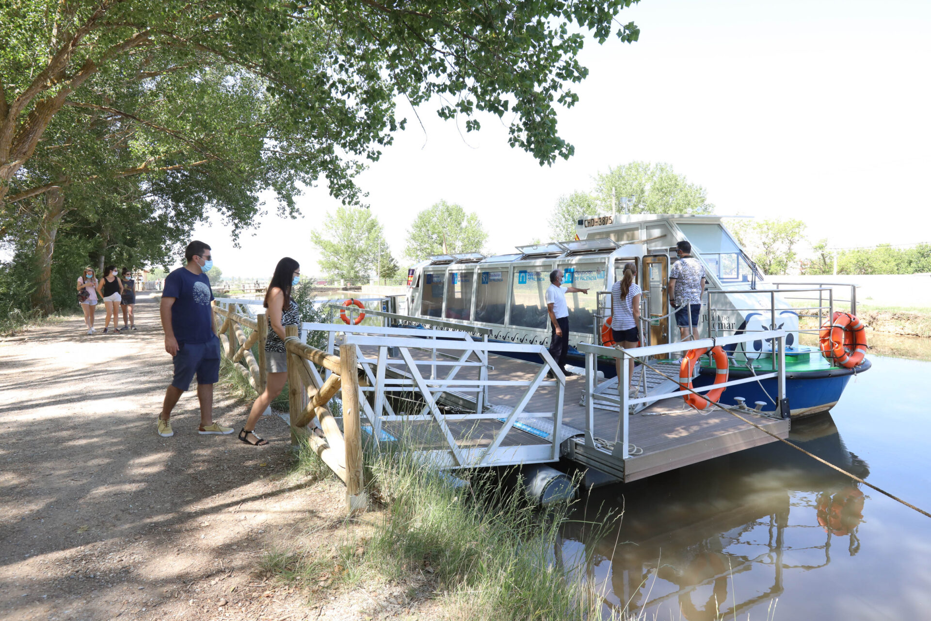 JUAN DE HOMAR. Se puso en marcha en agosto de 2018 una ruta en barco por el Canal de Castilla en el único tramo navegable del Camino de Santiago Francés, entre Frómista (esclusa diecisiete) y el término municipal de Boadilla del Camino (esclusa dieciséis) con la finalidad de aprovechar las sinergias del Camino de Santiago y el Canal de Castilla, haciendo más atractivo el viaje en esta embarcación en este tramo jacobeo a su paso por Palencia.