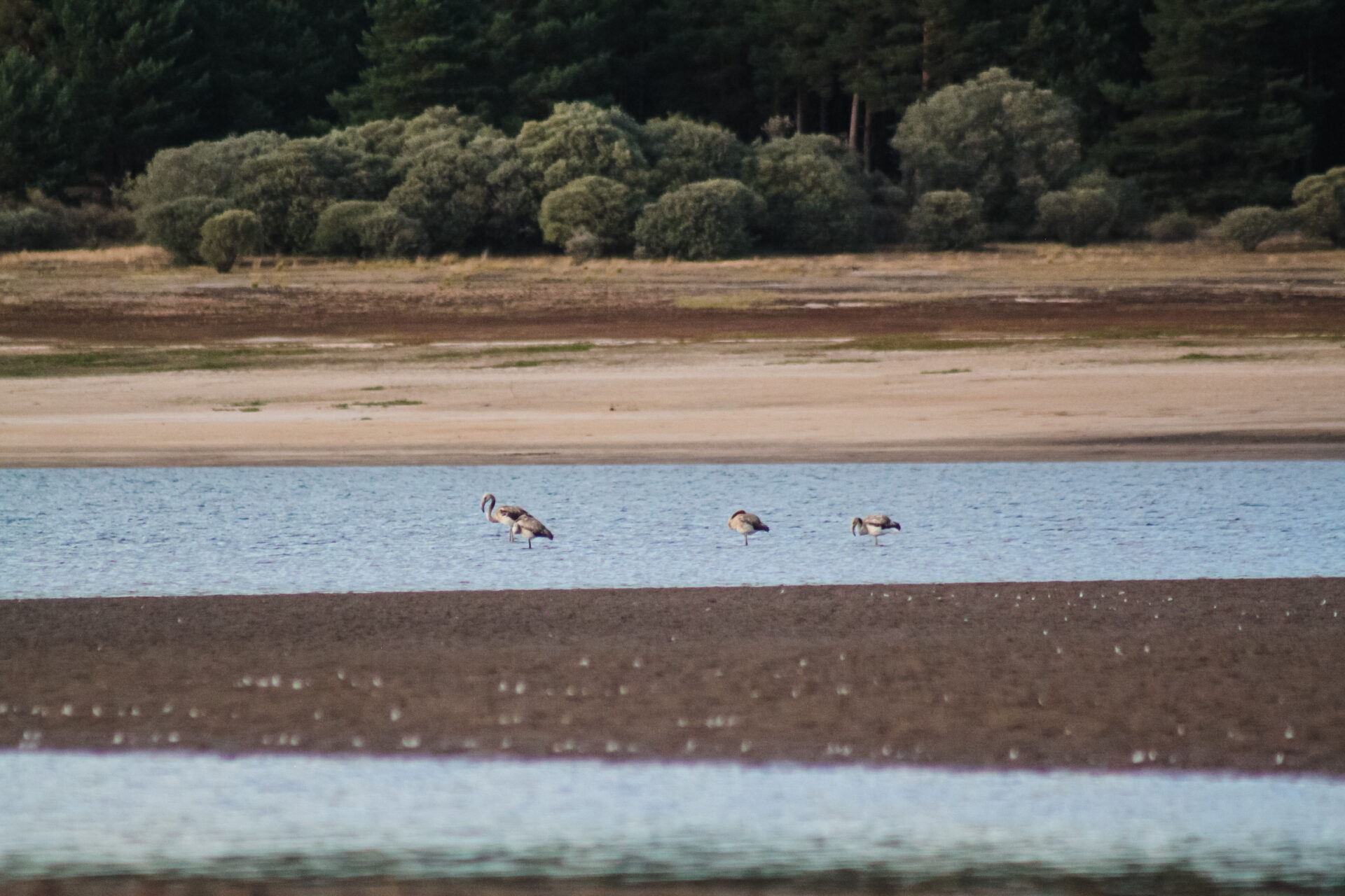 El embalse de la Cuerda del Pozo en Soria guarece desde el 1 de septiembre a cinco flamencos jóvenes pero también se han avistado ejemplares en Palencia