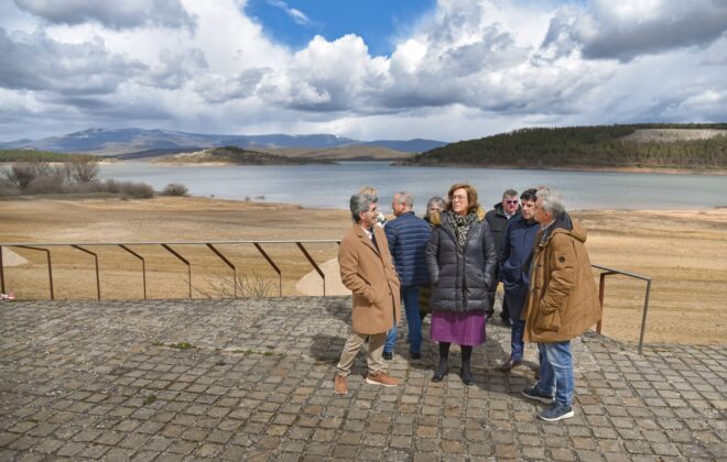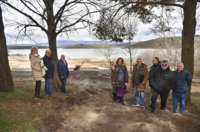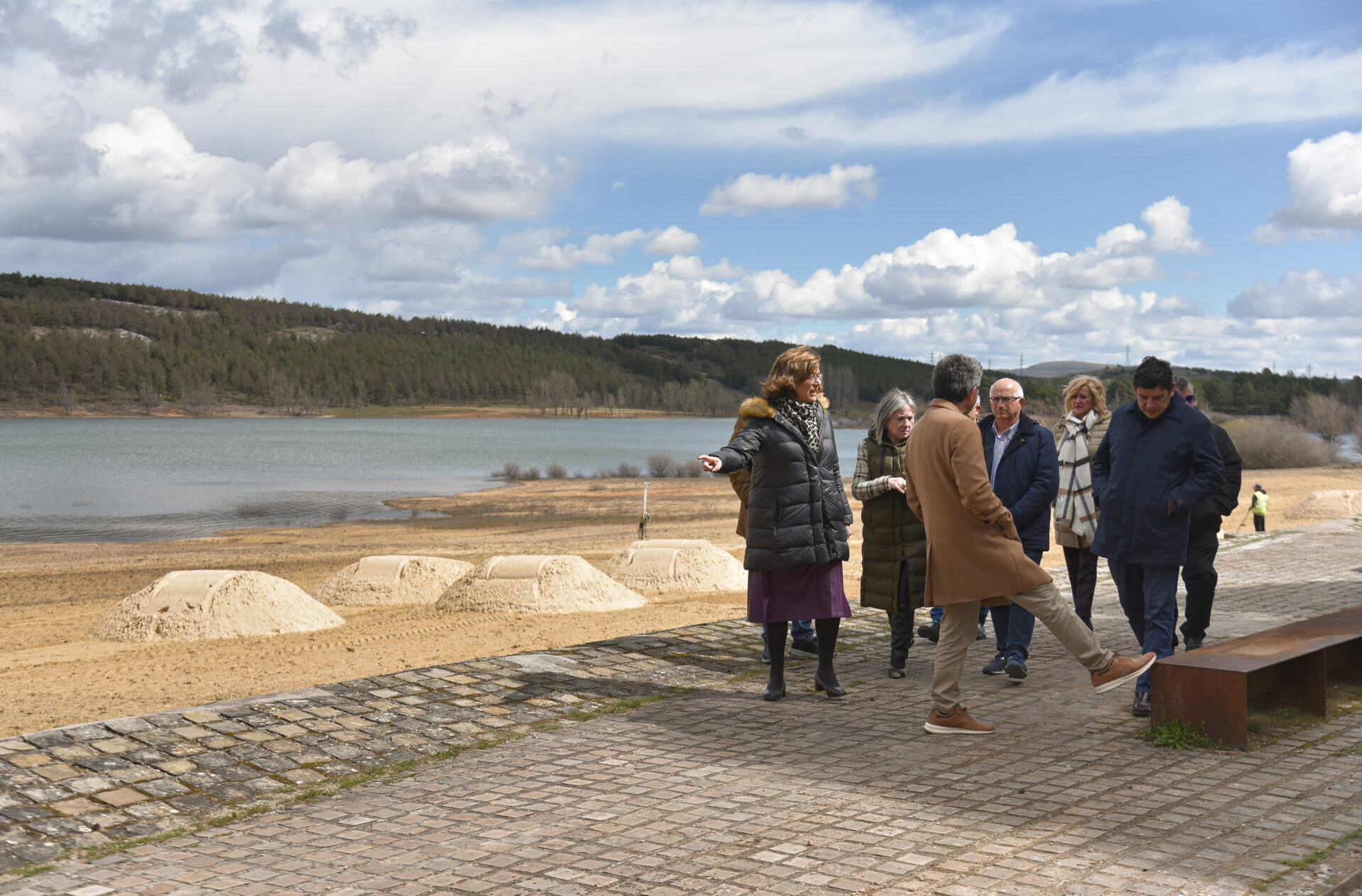 La presidente de la Diputación, Ángeles Armisén, acompañada de los diputados zona, Urbano Alonso y Jesús Sevilla, además de la alcaldesa de Aguilar, María José Ortega, ha visitado los trabajos de adecuación ambiental que se están ejecutando en la playa del embalse de la localidad galletera y que están a punto de finalizar.