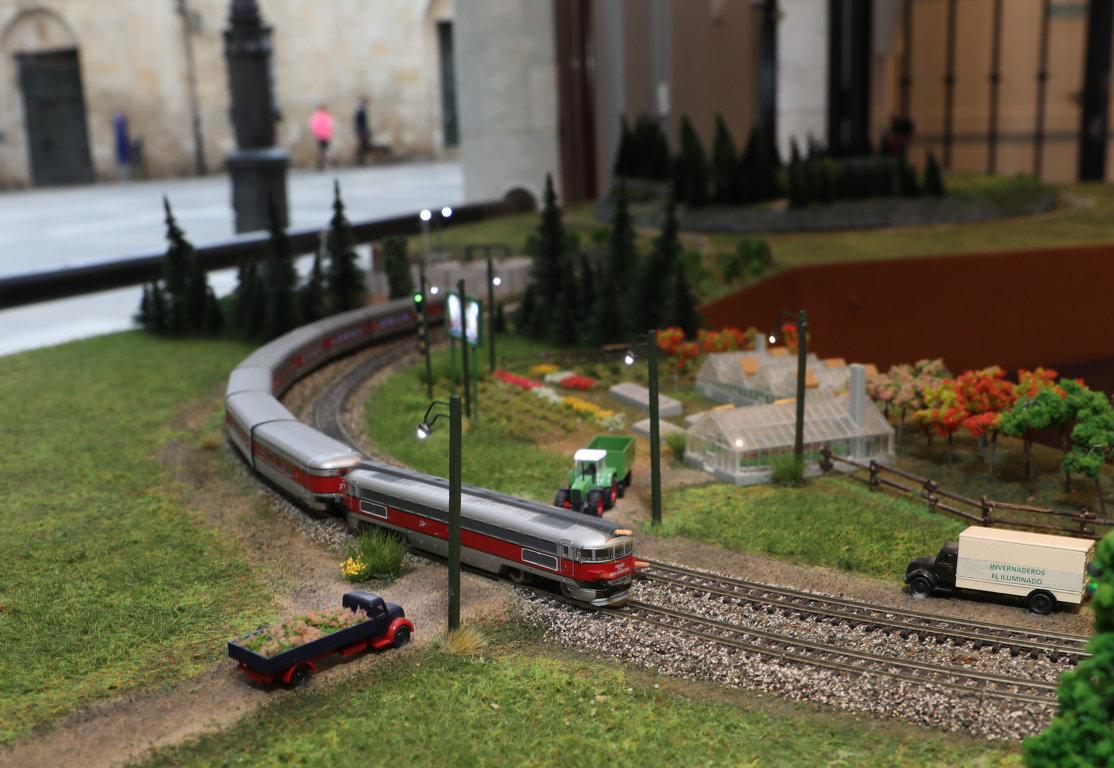 Cada día han cambiado un poco el tipo de trenes para que haya variedad en los mismos y no sea monótono, aunque también cuentan con ejemplos europeos, con trenes austriacos y suizos. La idea es que la maqueta sea rotativa, comenta Ruiz.
