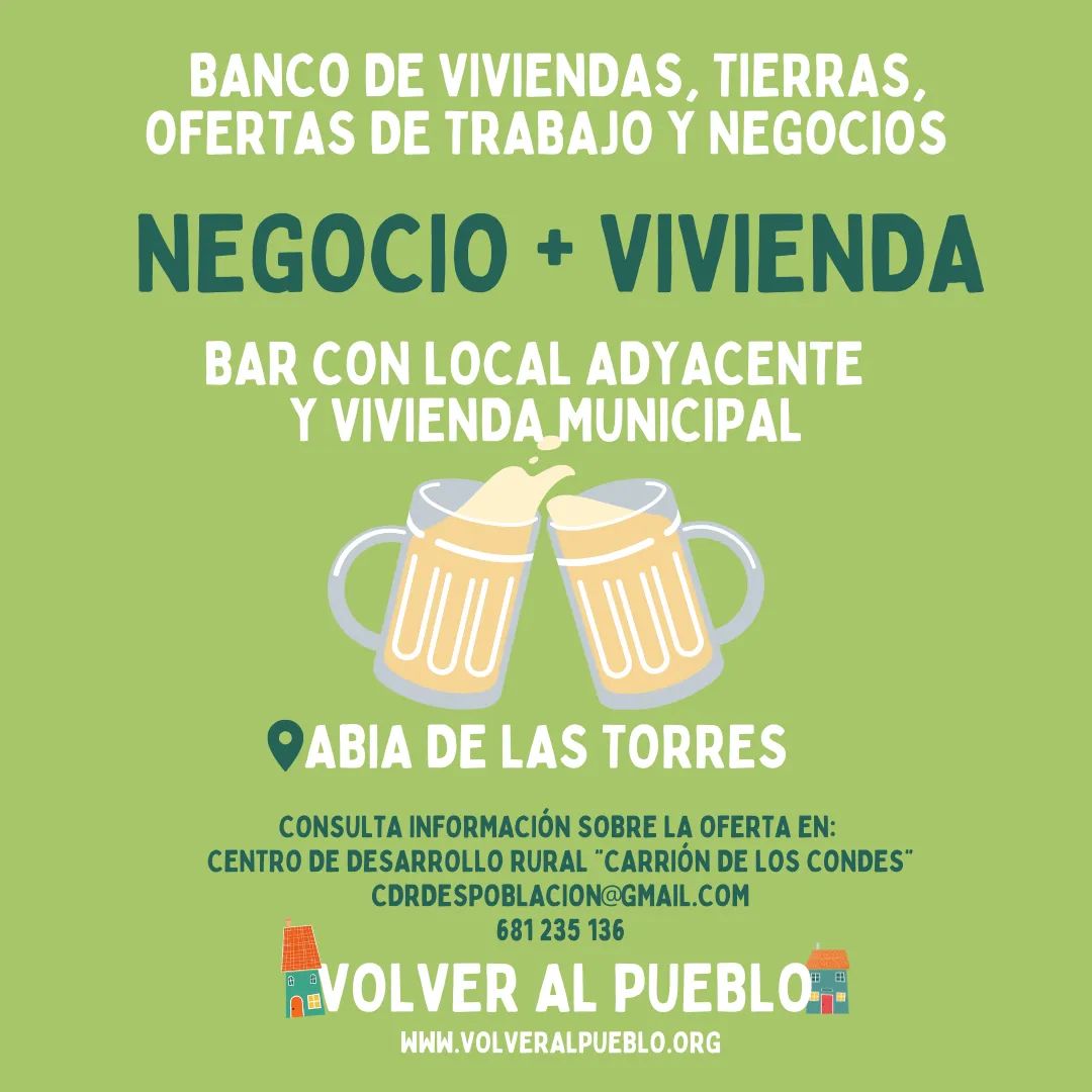 El Ayuntamiento de Abia de las Torres está buscando a una familia que gestione el bar del pueblo y habite en la vivienda municipal (alquiler 100 euros/mes).