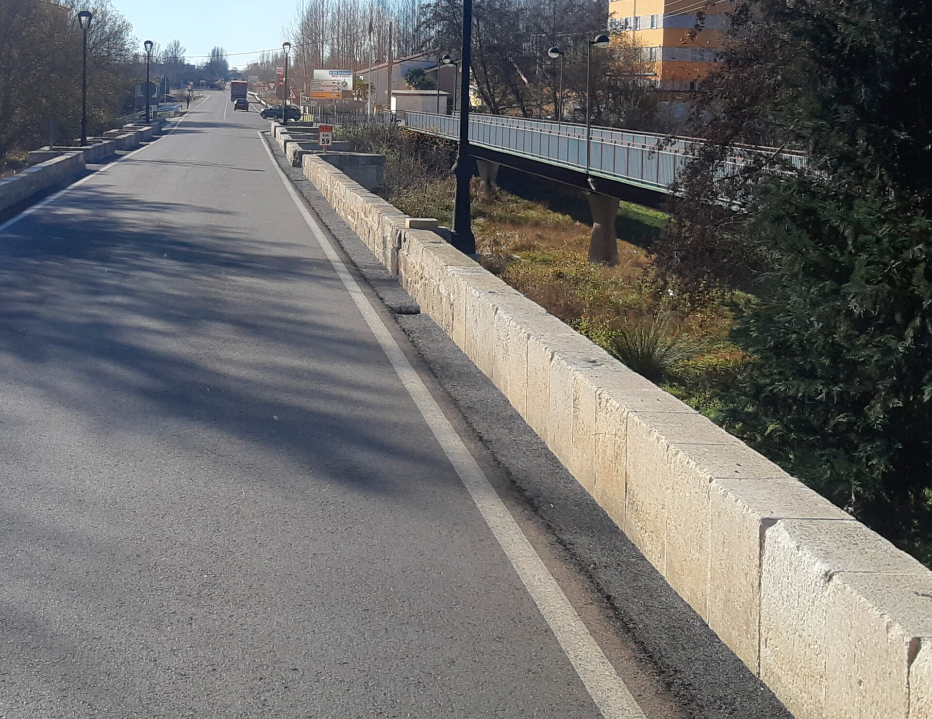 “En este año y medio desde que se reabrió el tráfico, hemos tenido dos accidentes que provocaron la caída parcial del pretil, por la colisión lateral de los vehículos contra él”, indica Adolfo Palacios, alcalde de Saldaña. Además, se han registrado varios siniestros que se tradujeron en marcas en las piedras del puente y rozones en los automóviles.