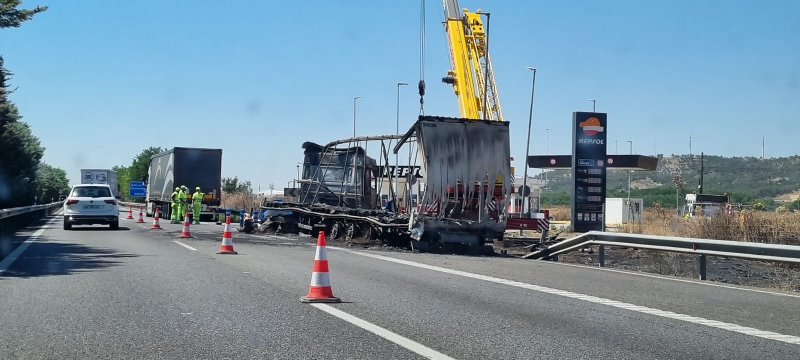 Finalmente, a las 15 horas se retiró el camión, quedando cortado el carril de acceso al Área de Servicio y finalmente a las 16 horas se dio por zanjado el incidente, al reabrir también el acceso a la gasolinera.