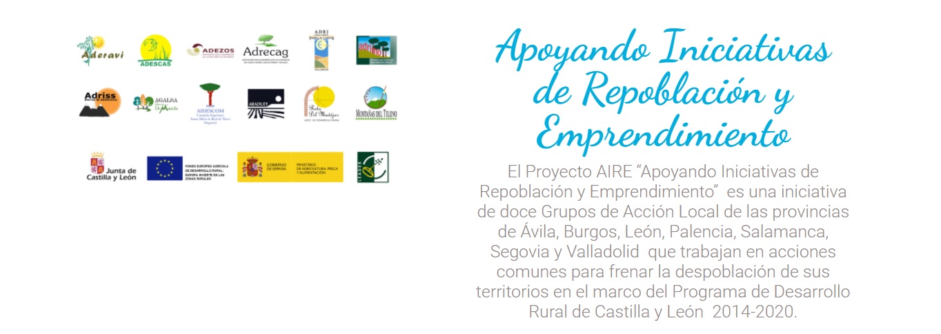 AIRE es un plan de acción anunciado en febrero de 2019 cuyos socios son doce Grupos de Acción Local de Castilla y León, de las provincias de Ávila (Adrimo), Burgos (Agalsa), León (Montañas del Teleno), Palencia (Araduey ), Salamanca (Adezos, Adrecag y Adriss), Segovia (Aidescom) y Valladolid (Ruta del Mudejar y Adri Valladolid Norte).