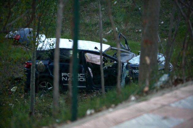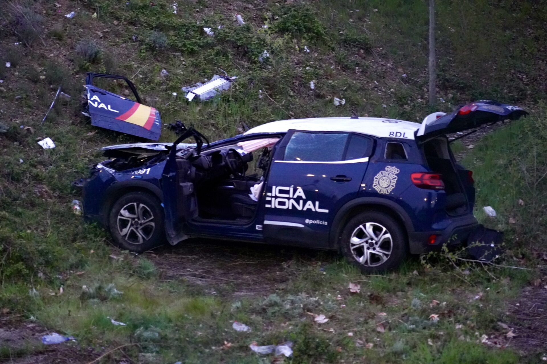 Dos agentes de la Policía Nacional de León resultaron heridos a última hora de la tarde de este domingo tras sufrir una salida de vía con el coche patrulla y volcar en la avenida Palencia de la capital leonesa, donde quedaron atrapados en el interior del vehículo.