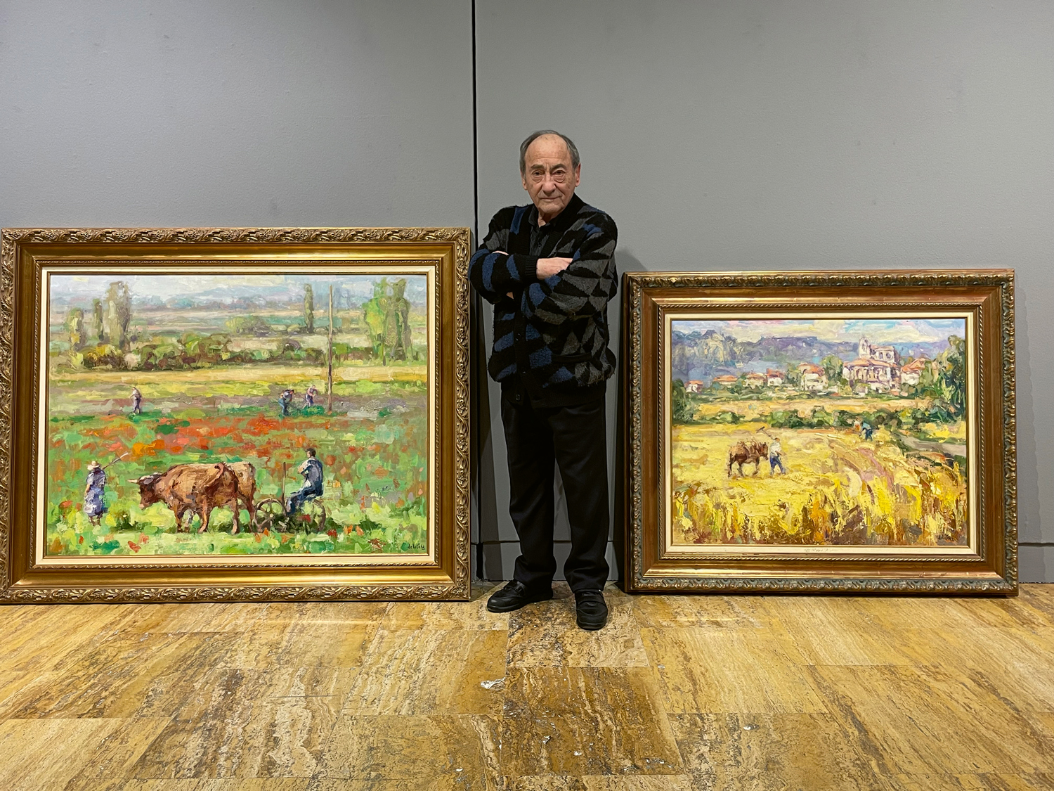 La exposición no se olvida de la Castilla natal del pintor, ya que practicamente la midad de los cuadros están inspirados en su tierra de origen. «Soy castellano, soy palentino y siempre llevo esta tierra en mi corazón. Hace años expuse en Buenos Aires, Argentina, a donde llevé mi pintura impresionista, muy sorollesca, y llevaba mi Castilla, mi Becerril de Campos, principalmente, porque hago patria, como con Grijota o Villaumbrales. Son pueblos muy pictóricos y entonces me veo en ellos. Y no te digo nada de las ovejas. Me gusta pintar mucho las ovejas, las trillas antiguas, cuando se cantaba la campanera… Siempre verás en mis exposiciones a mi Castilla, siempre Castilla. ¡La amo, la quiero!», exclama.