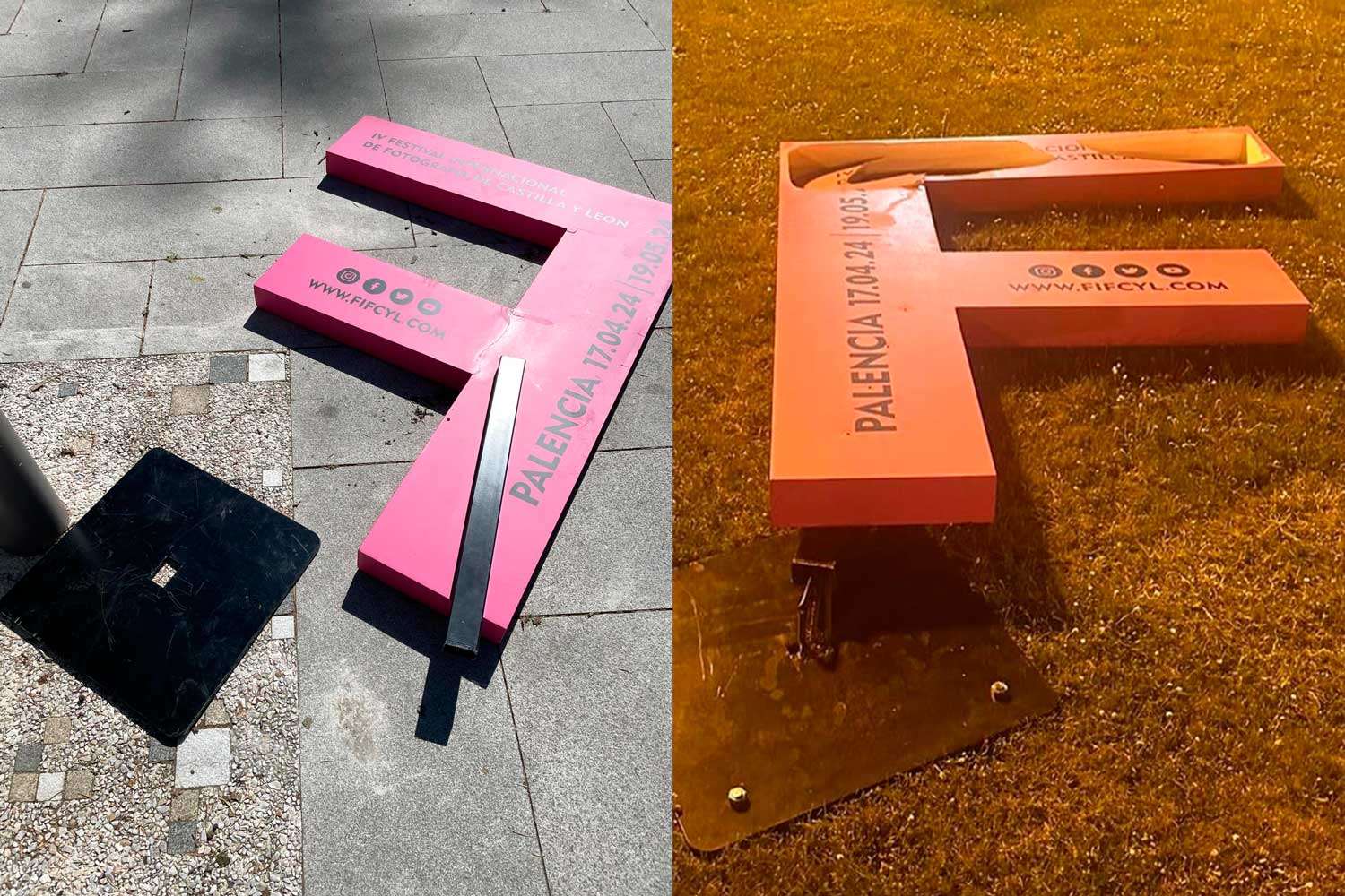 El Ayuntamiento de Palencia denuncia que varias de las letras ‘F’ de gran tamaño que estaban en la calle con motivo del Festival Internacional de Fotografía han sido destrozadas a lo largo del fin de semana, según denuncia un comunicado recogido por Ical.