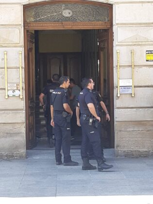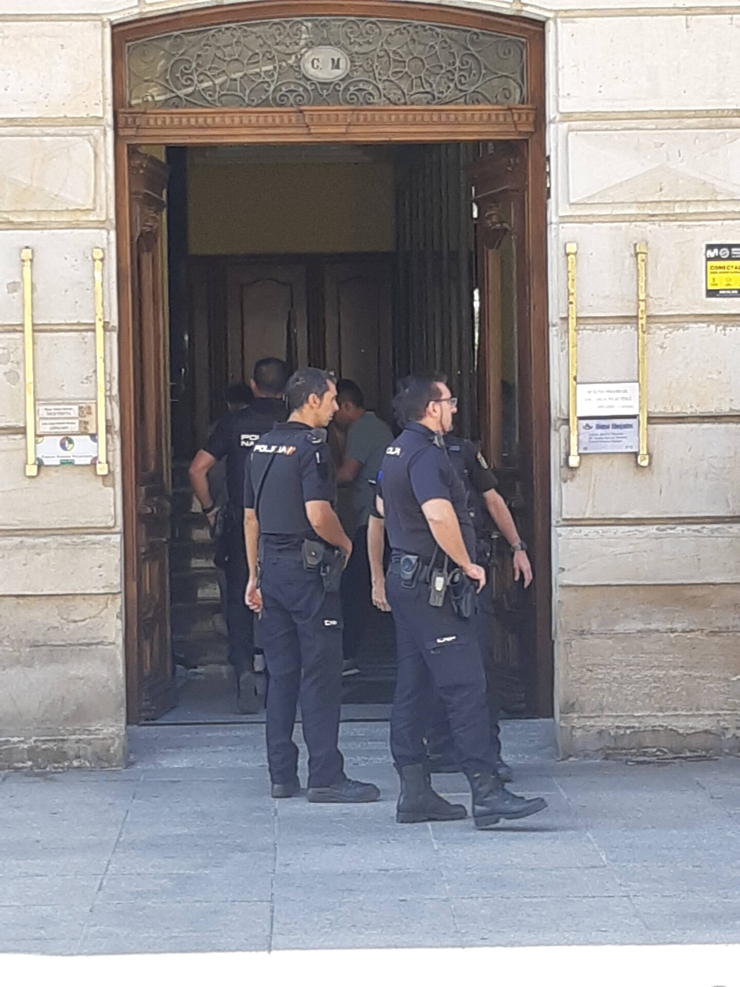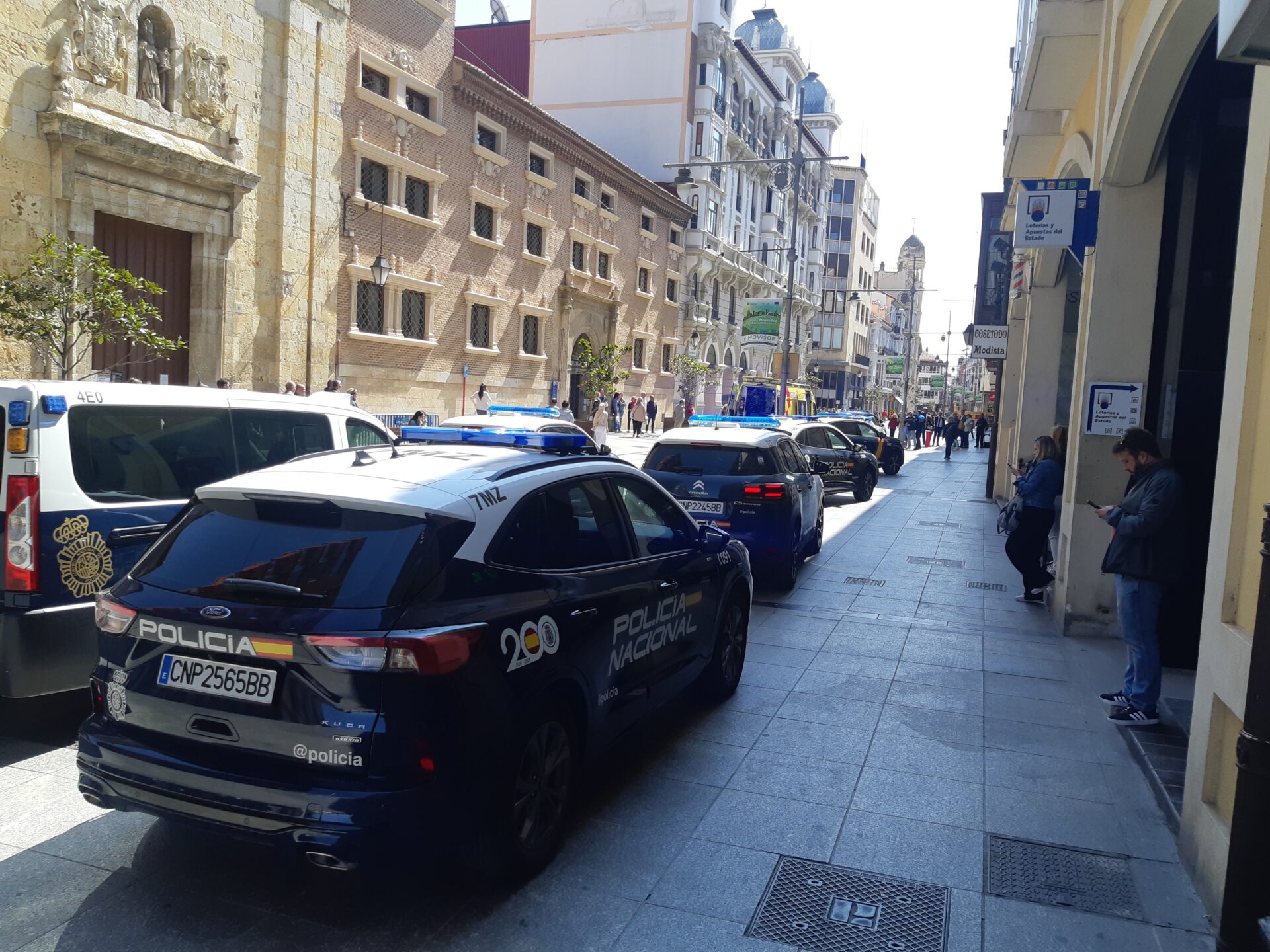 Una amplio dispositivo que ha llamado la atención de muchos palentinos. Hasta seis coches patrulla del Cuerpo Nacional del Policía y otros tres de la Policía Local de Palencia, se desplazaron hasta este edificio en el que se encuentran varias oficinas de abogados.