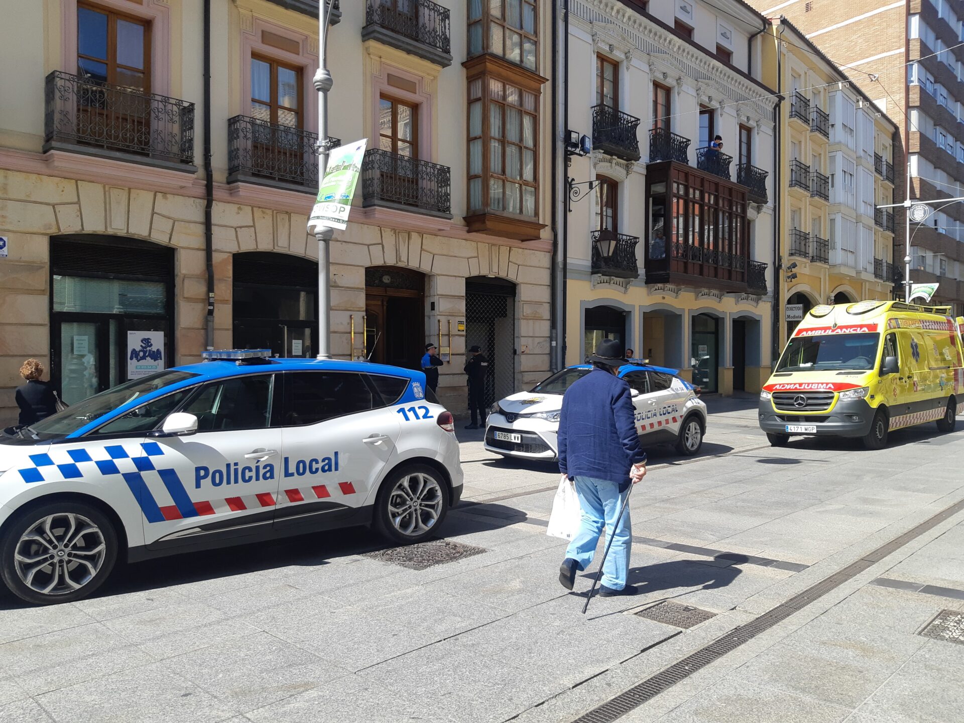 Una ambulancia también se personó ante el bloque, ubicado frente a la sede municipal de Canónigas. El equipo sanitario habría atendido in situ a la mujer, para posteriormente pasarla a una camilla con la que fue derivada en Ambulancia hasta el Hospital Río Carrión de la capital.