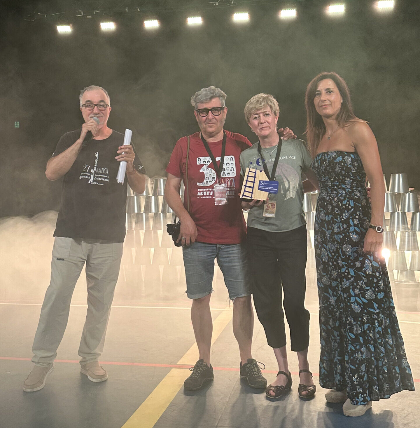 Antes de la última actuación, el Polideportivo será escenario a las 21:45 de la entrega de los Premios Escaleras del 31º ARCA 2025. Además de los galardones otorgados por eljurado, el público ha podido votar tras cada espectáculo a través de códigos QR. Durante la gala también se entregará la Escalera de Honor 2025 a la Escuela Municipal de Circo y Teatro Físico de Torrelavega (Cantabria), gestionada por Malabaracirco.