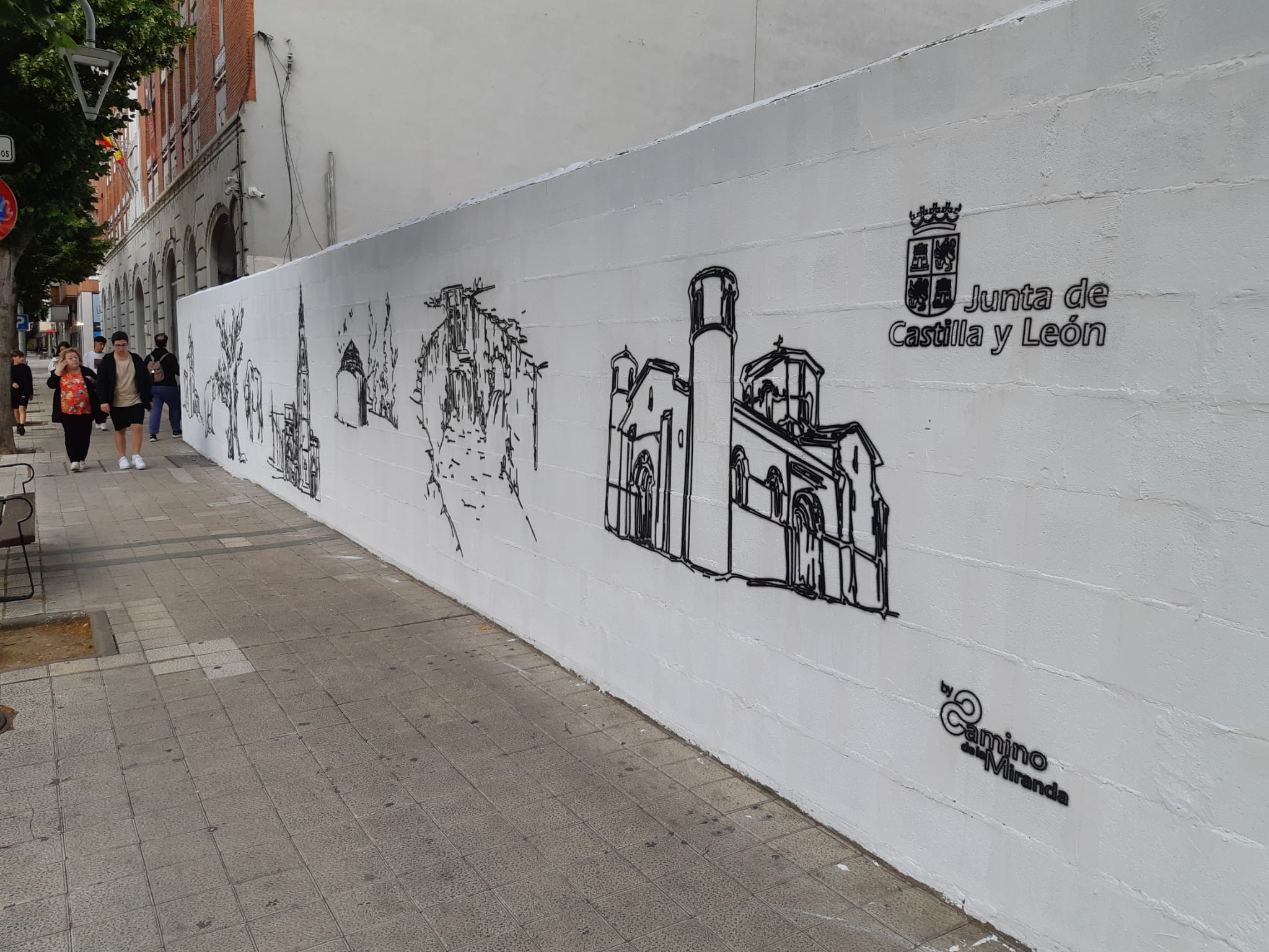 Porque acaba de ‘inaugurar’ una tapia en que se han plasmado en forma de mural ocho referencias de la riqueza patrimonial y natural de la provincia de Palencia. Una obra para la que no se ha contratado a nadie sino que  la proyección se ha realizado en colaboración con el CIFP Camino de la Miranda, que ha aportado el robot grafiterio automatizado desarrollado por el profesor Roberto González, y la Escuela de Arte Mariano Timón de Palencia, con la participación de los profesores Rosa María Otero, Javier Román y Alicia Cerdá, que han esbozado la muestra.