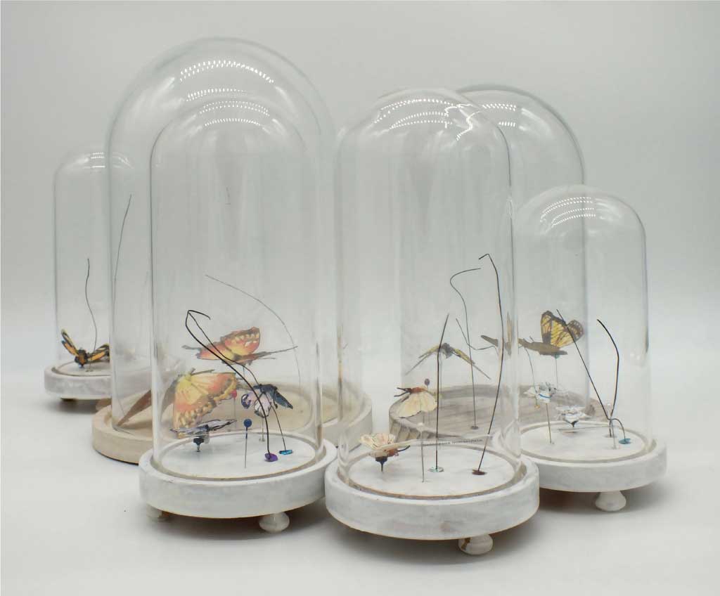 La muestra une dos instalaciones: la primera, creada en el marco de la beca de la Fundación Castilla y León, que consistió en un museo de mariposas y polillas extinguidas que se instaló el pasado invierno en la ex colonia minera de Vallejo de Orbó y recala por primera vez en una sala de arte convencional. La segunda, que lleva por título La última, es “el regreso a mi ciudad de origen, Madrid”. Se trata de “un pequeño memorial sobre los insectos paleoextinguidos instalados en unos peqeuños parterres con plantas tropicales y en un espacio marginal de los portales de Madrid. Una pieza con la que cierro el círculo desde mi llegada a Palencia en 2003”.