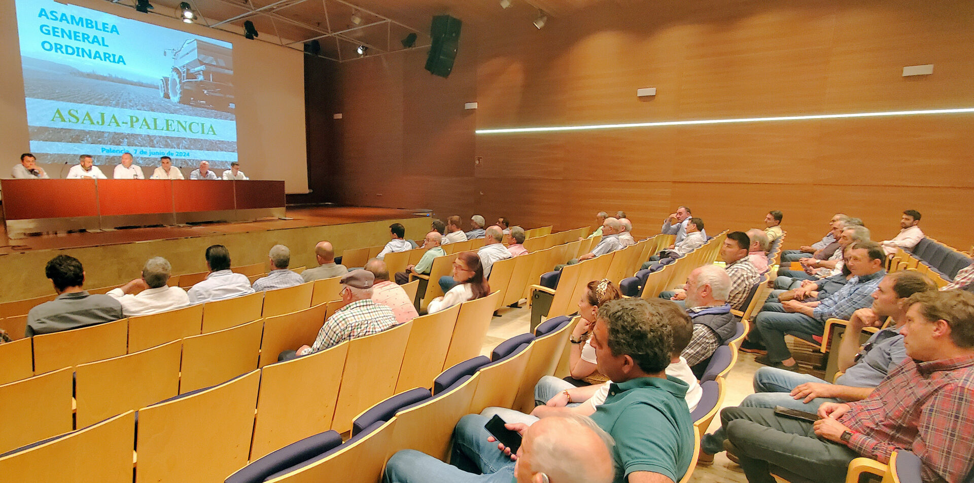 Centenar y medio de asociados de ASAJA-Palencia acudieron al Auditorio Unicaja Banco de la capital palentina para celebrar su asamblea general ordinaria de 2024, año marcado por las movilizaciones agrarias en sus primeros meses. El gerente de la entidad, Álvaro de la Hera, presentó las cuentas y el balance de 2023, para dar paso a la proyección de un vídeo de homenaje a los anteriores presidentes de la entidad desde su fundación en 1977.