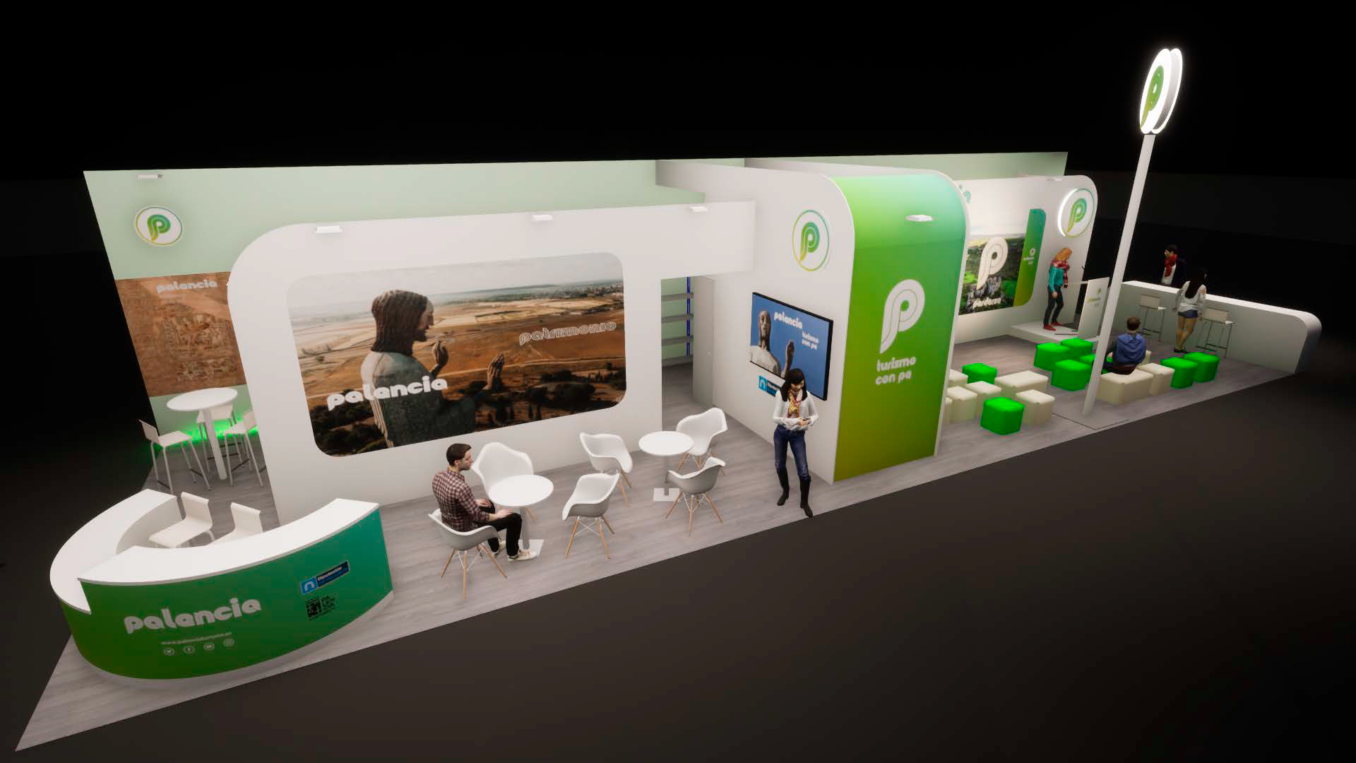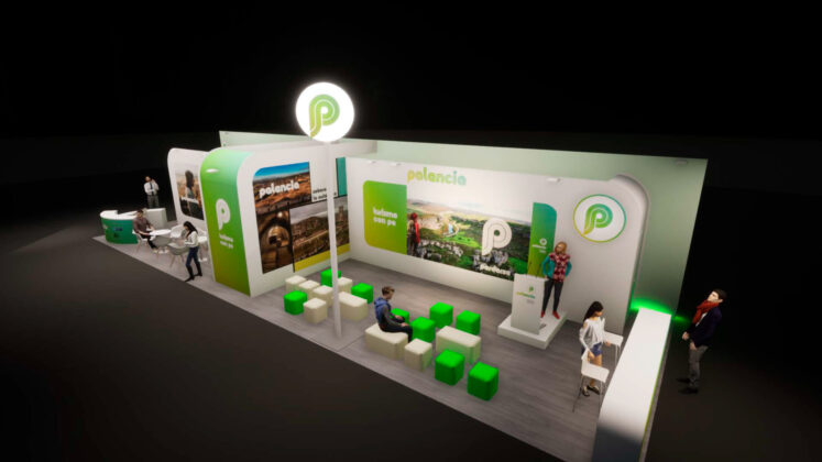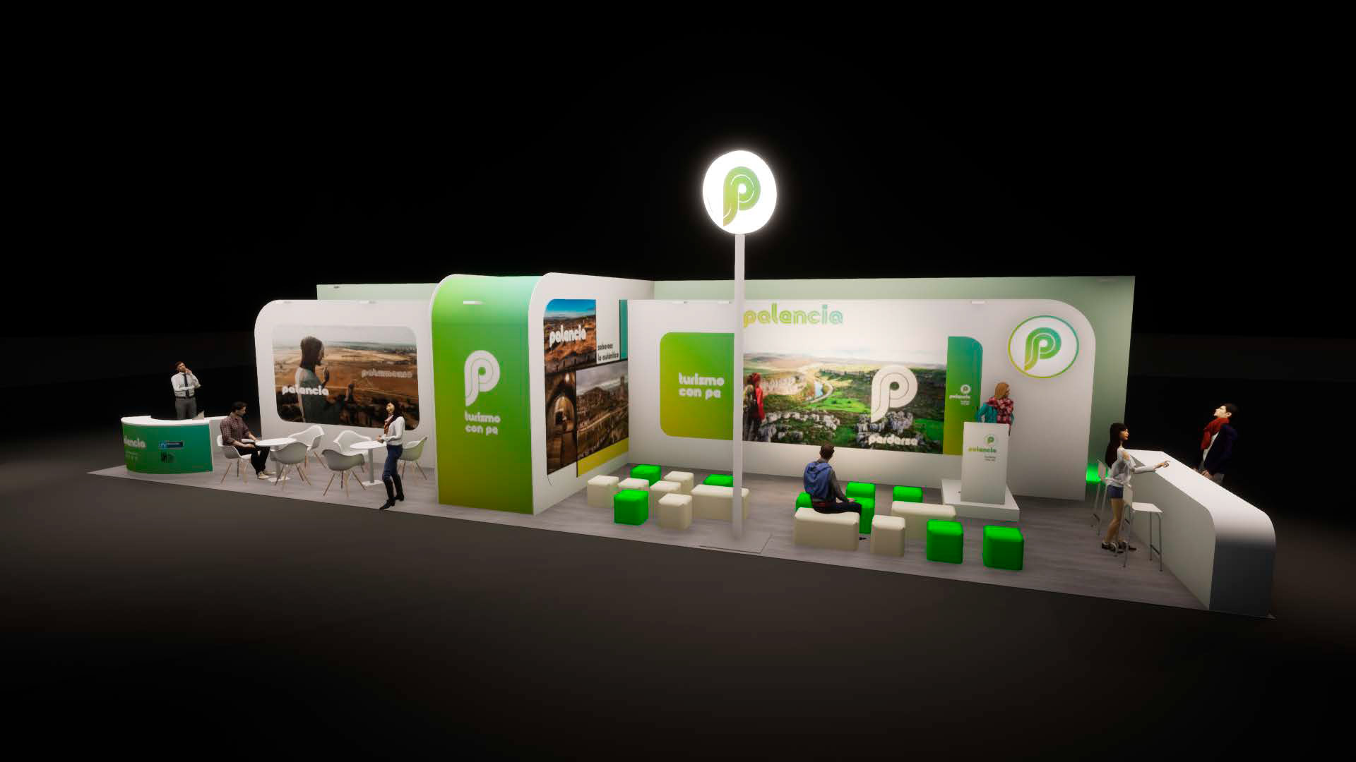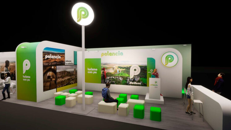 Y en torno a esa Pé, un diseño con rasgos curvos, “como los del nuevo anagrama, tonos degradas del amarillo al azul pasando por el verde y con el blanco de fondo”. No podían faltar en un stand de atención al público un mostrador de atención de 3,5 metros lineales para la información, un mostrador circular de 4,4 m, así como una zona de actividad con pantalla de 75 pulgadas para la proyección de vídeos e imágenes promocionales. Igualmente habrá una zona de trabajo con mesas y sillas, además de un espacio para office y almacenes, para recrear en este espacio abierto al público una experiencia inolvidable de encuentro con Palencia y con sus gentes”, explican desde Palencia Turismo.