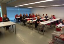 El coordinador del Centro de Fisioterapia y fisioterapeuta de ASPAYM Castilla y León en Palencia, Francisco Javier Ramos, impartió una formación a entrenadores y alumnas del Club Deportivo Palencia Fútbol Femenino sobre prevención de lesiones y vendajes.
