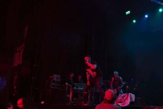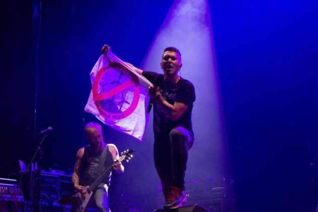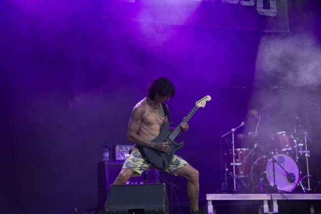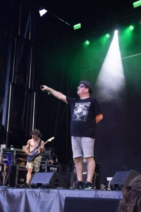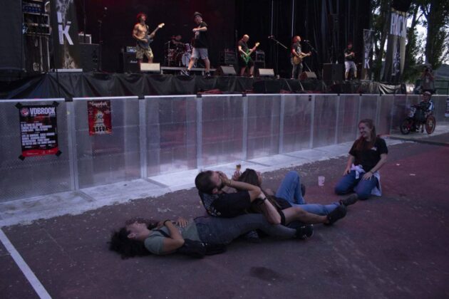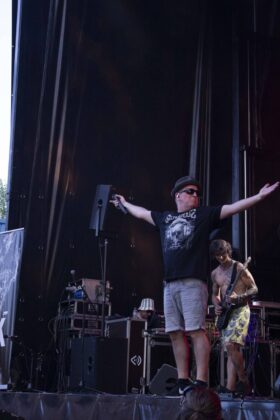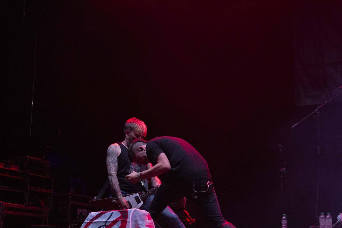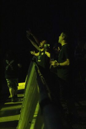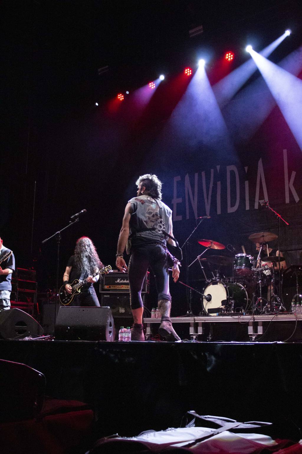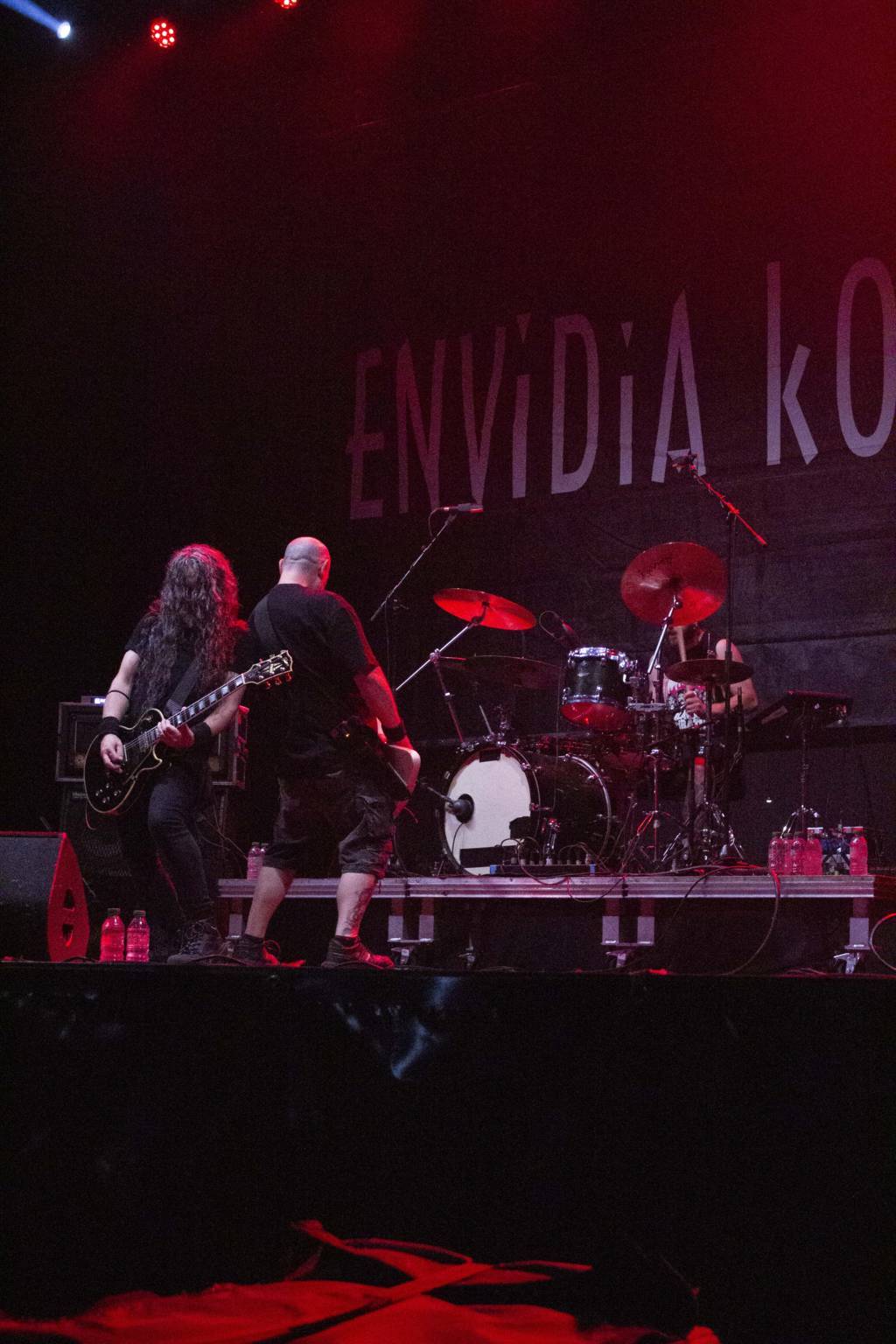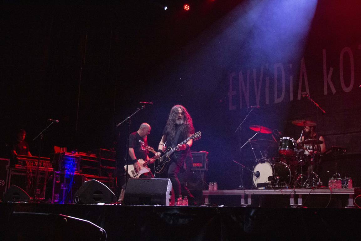 El espacio entre el público y la valla que protege el escenario se ha ido reduciendo paulatinamente. Cuando llega el turno de Envidia Kotxina, ya ha desaparecido. La gente estÔ en la zona donde los bajos hacen que te retumbe el pecho, y el suelo bajo tus pies. El fervor que envuelve al público, causa un arrebato en el que un espontÔneo con agilidad felina salta la valla y se sube al escenario. Allà es recibido con caras de sorpresa, pero los músicos no paran de tocar.