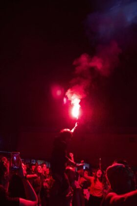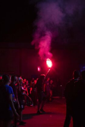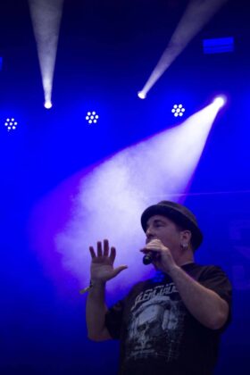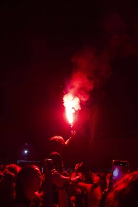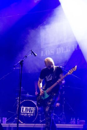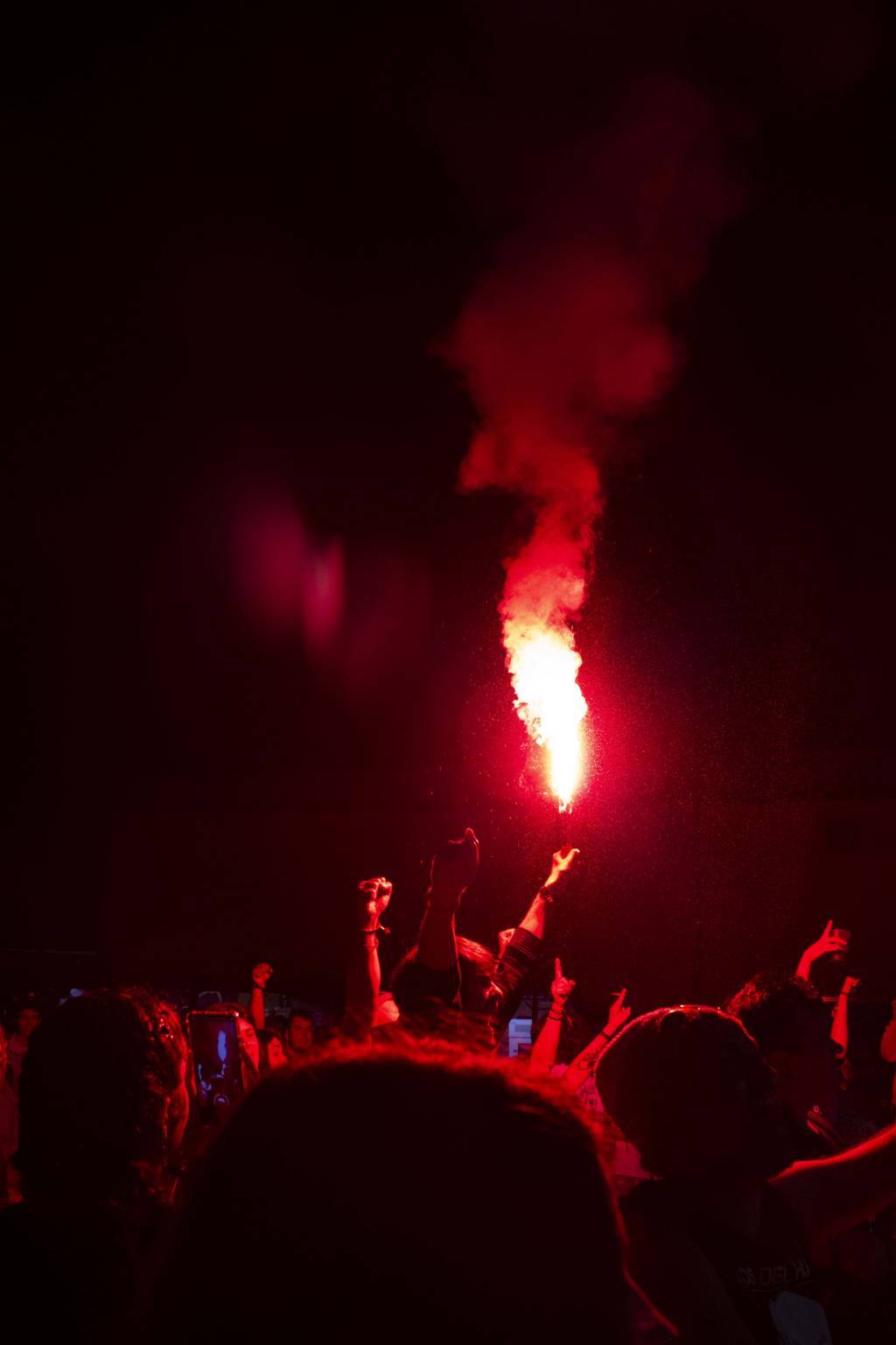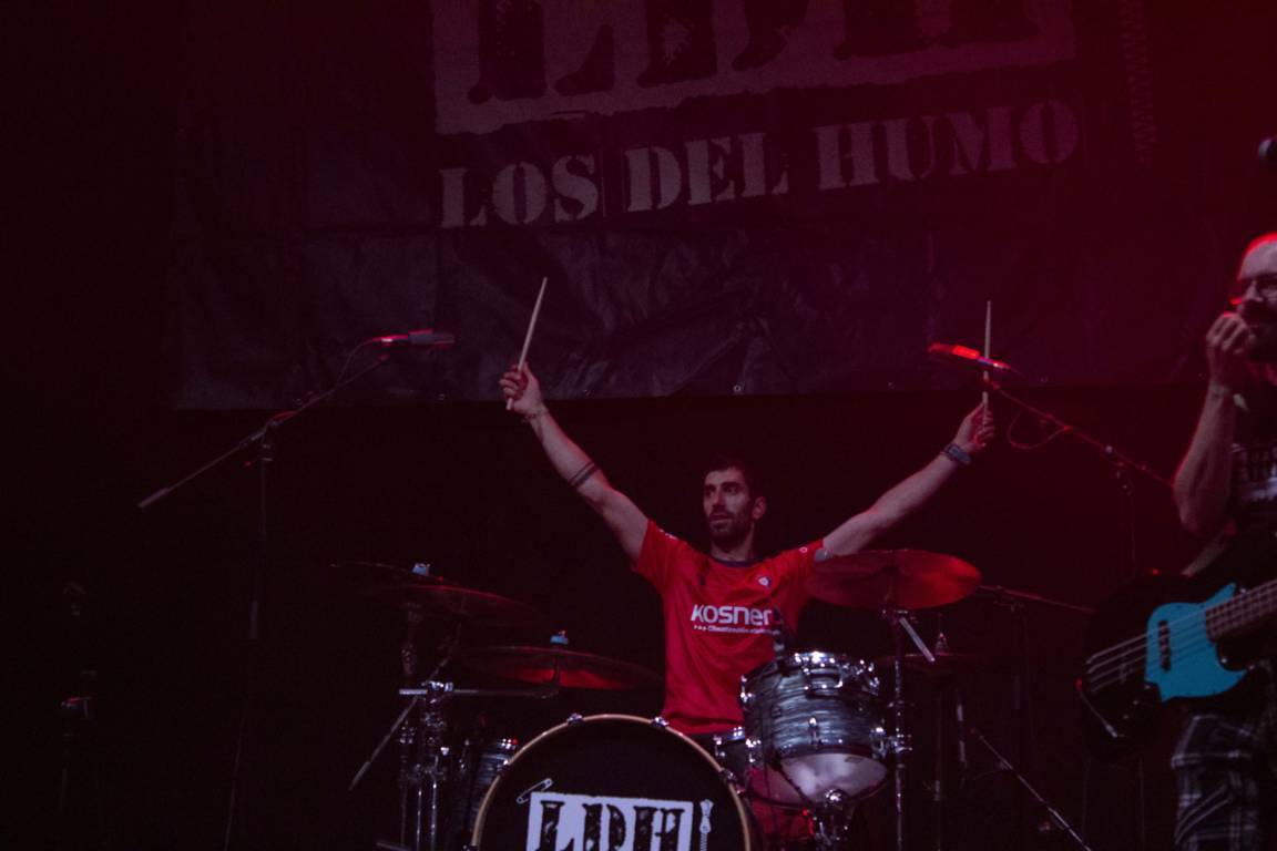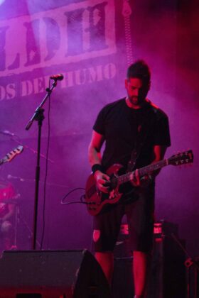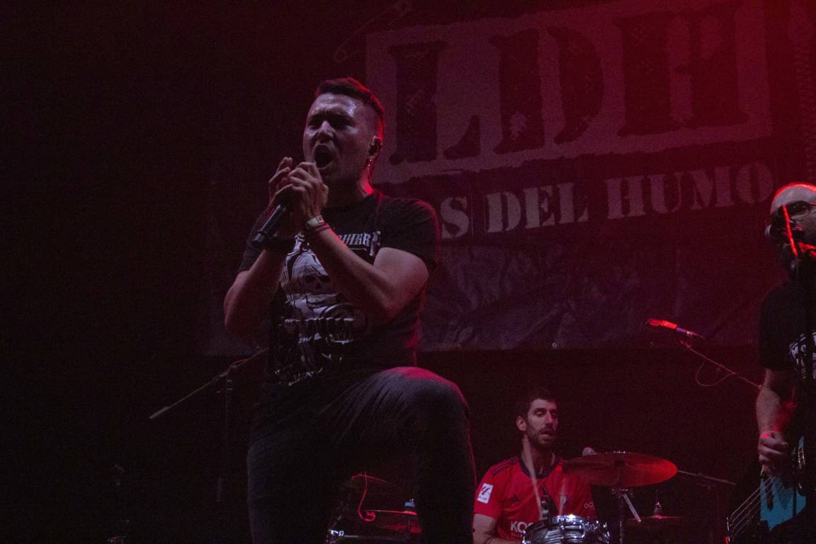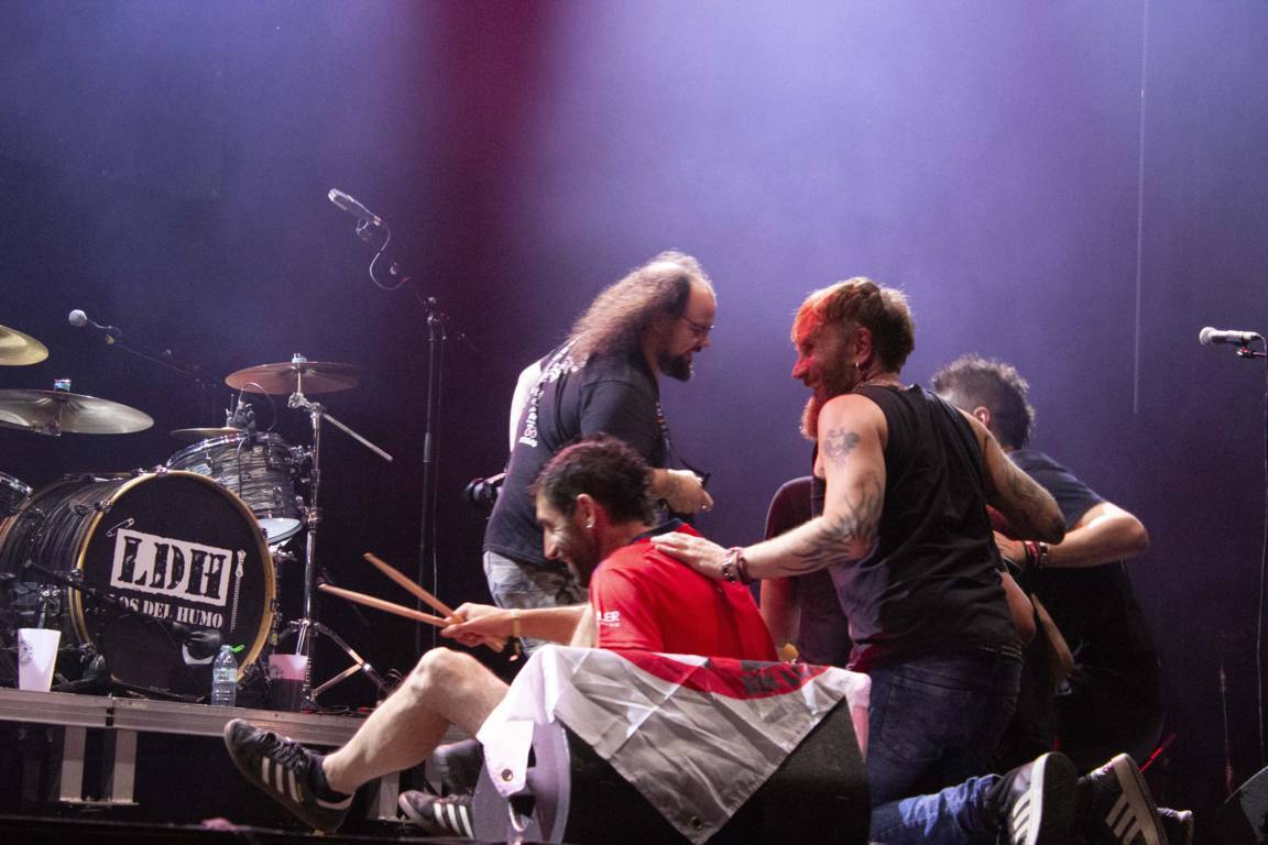 La misión de cerrar la noche recae sobre Los de Humo. La luz de una bengala tiƱe de rojo la pista. Por fortuna, o porque el concierto comenzaba a las 2:30 de la maƱana, se habĆa disuelto bastante la aglomeración de personas previa. En este caso Chus, solo se dedica a cantar, lo cual llena el escenario de dinamismo. Afirman que vienen de un pueblo ātan pequeƱo como este, en las montaƱas de Burgos, donde se hace el Tresparockā (El Tresparock es un festival tambiĆ©n solidario y autogestionado que se celebra en Trespaderne, Burgos. La edición de este aƱo tendrĆ” lugar del 17 al 20 de julio).