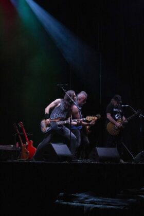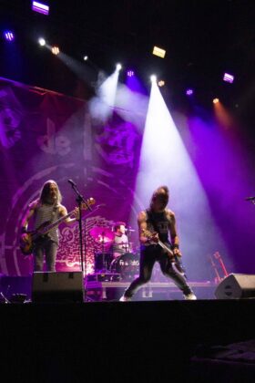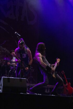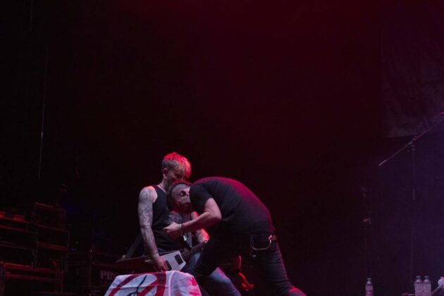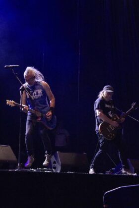 Durante una parada en la que Maxi CompĆ”n afina su guitarra āpor prescripción mĆ©dicaā, Emmanuel GonzĆ”lez, guitarrista solista de la banda, afirma que ālos punkis no afinanā, pero en todo el concierto no suena una nota fuera de sitio. TambiĆ©n se toman un momento para comentar que han estado muy a gusto en Astudillo.