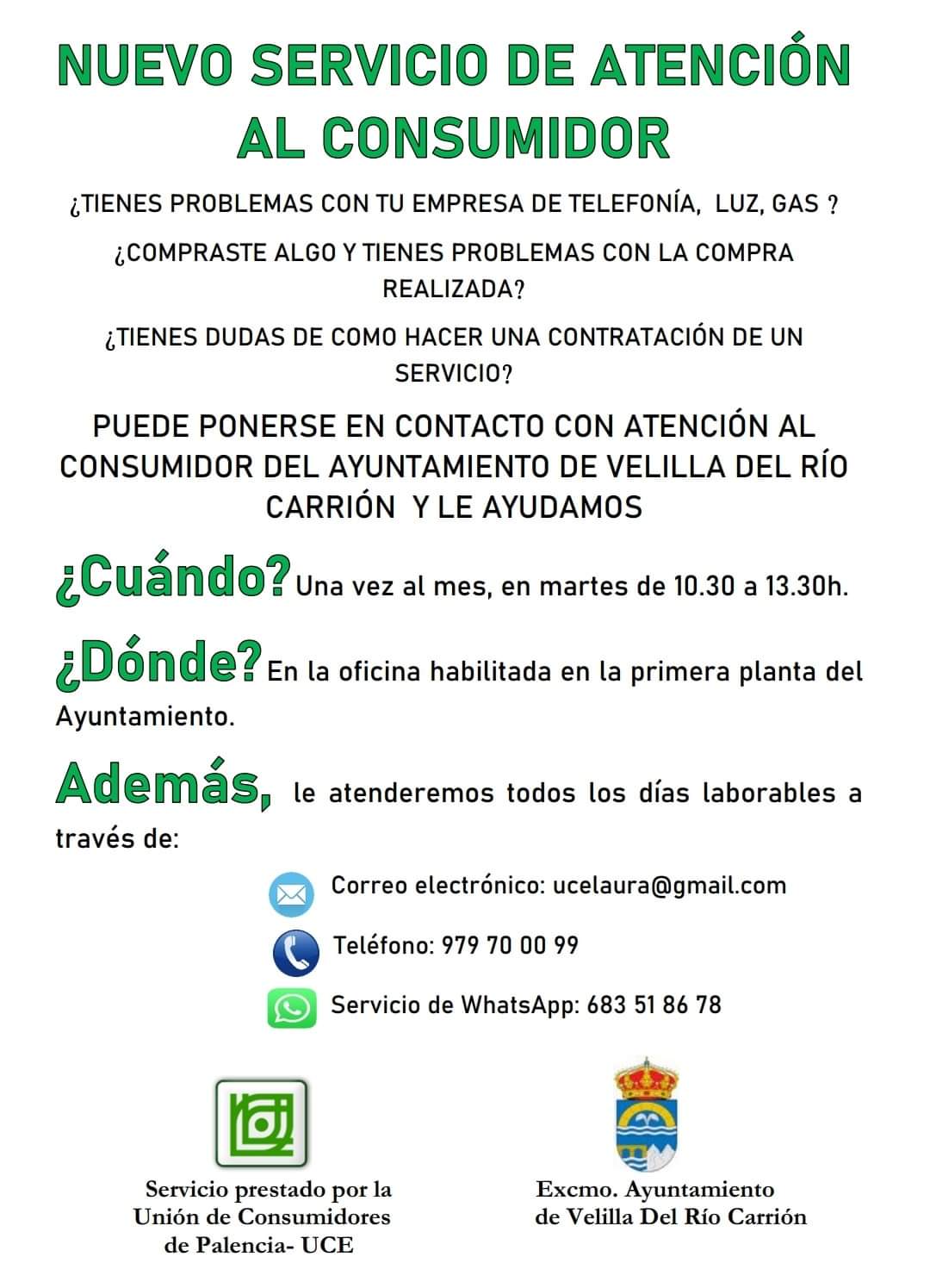 Este servicio será prestado a través de la Unión de Consumidores de Palencia-UCE una vez al mes, en martes de 10:30 a 13:30 horas, en una oficina habilitada en la primera planta del Ayuntamiento.