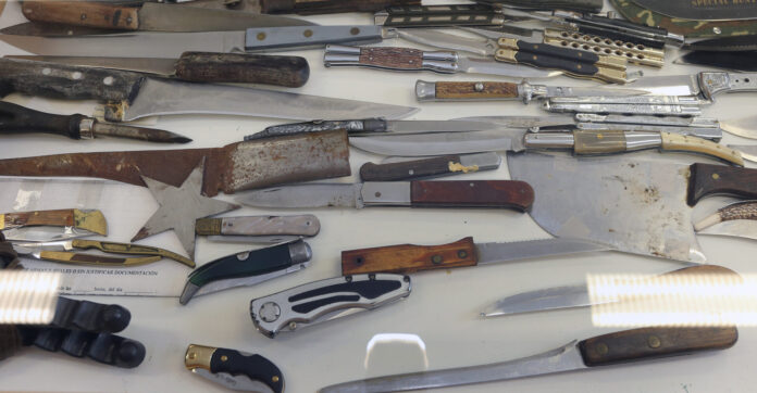 Cuchillos incautados por la Policía Local de Palencia que se muestran en su museo. / ICAL