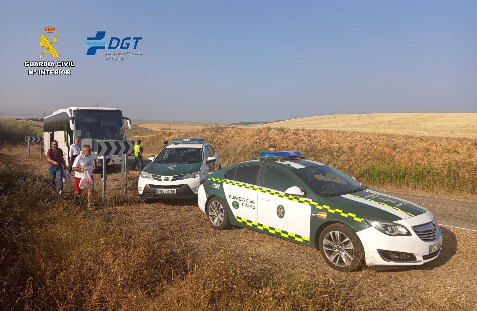Los hechos ocurrieron ayer en torno a las 17.55 horas. Fue una patrulla del Subsector de Tráfico de Palencia la que localizó un autobús detenido en el arcén de la carretera autonómica P-227, a la altura del kilómetro 30,500 sentido Herrera de Pisuerga, el cual transportaba cincuenta viajeros.
