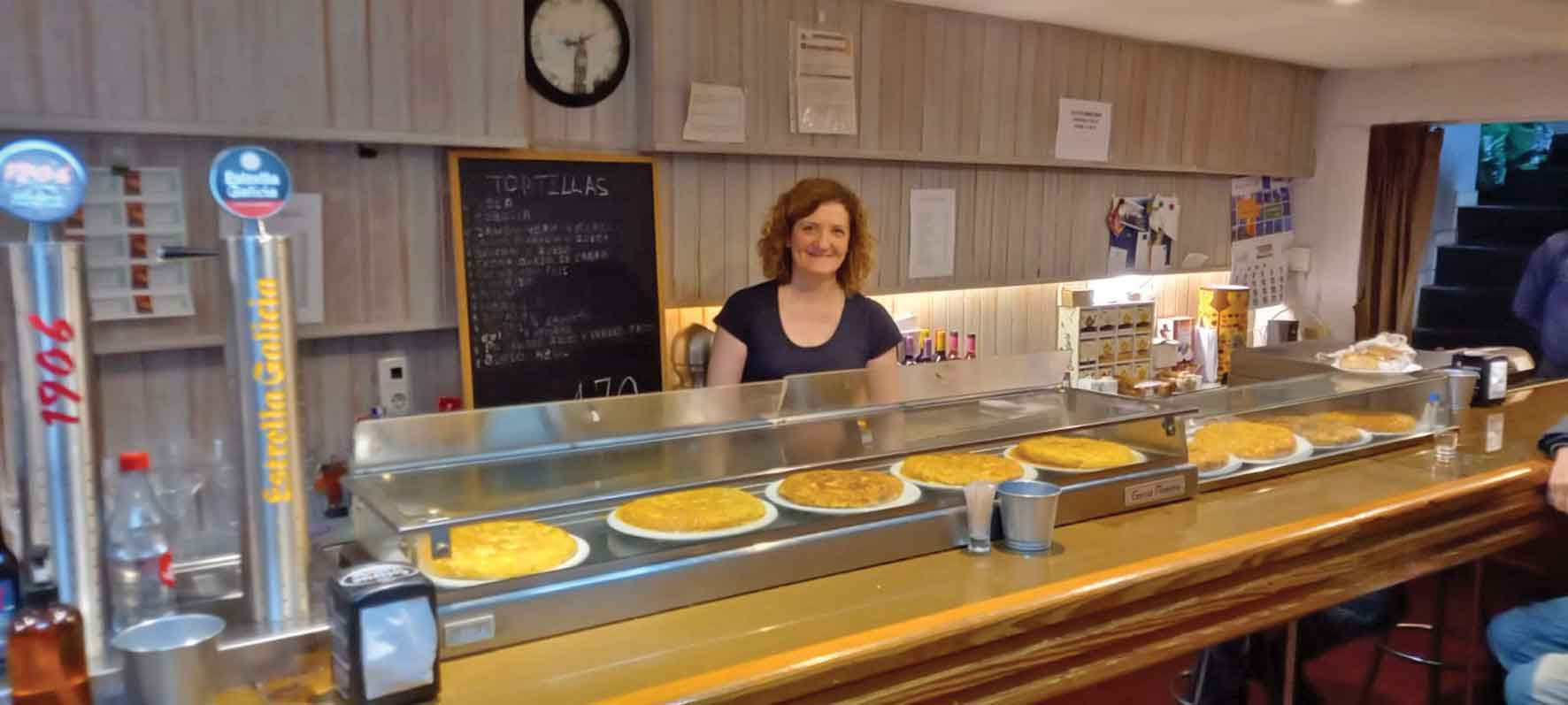 Su gerente, Lourdes Carazo Soler, lleva 12 años al frente de este negocio en el que este típico bocado español es la estrella en el día a día del Bar. Y como para muestra un botón, decir que al día se cocinan más de 30 tortillas, incluso los fines de semana se llegan a preparar hasta 50. “Desde primera hora de la mañana es lo que más reclama la gente”, dice Lourdes, quien recuerda que ofrece a diario 14 variedades de tortilla. Así, los clientes pueden pedirla rellena de cecina con queso de cabra; jamón york y queso; beicon y queso; cecina con foie; atún; morcilla; bacalao; jamón serrano y queso; setas y gambas; gulas y gambas; pimientos rojos y verdes fritos o de queso azul. Además, se suman a todas estas variedades la tortilla con cebolla y la sin cebolla. “He hecho combinaciones que gustan mucho y que nadie había elaborado nunca”.