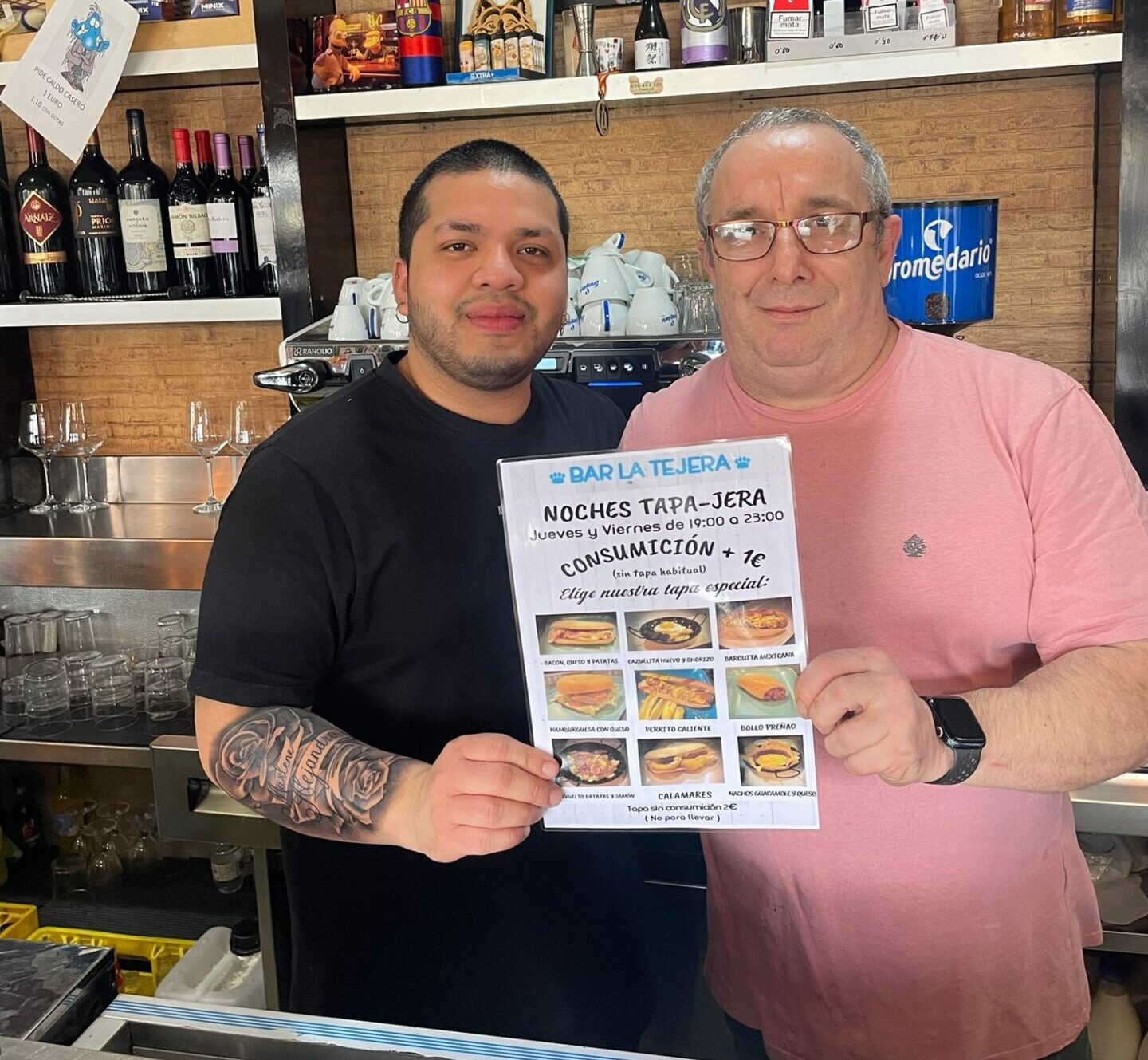 Y es que durante todos los jueves y viernes de 19 a 23 horas, por cada consumición y solamente pagando un euro más, el cliente puede ir perfectamente cenado a casa gracias a las tapas de tamaño XL que se sirven, pudiendo elegir entre varias: bocadillo de queso, beicon y patatas; cazuelita de huevo y chorizo; barquita mexicana; hamburguesa con queso; perrito caliente; bollo preñado; revuelto de patatas y jamón; bocadillo de calamares o nachos con guacamole y queso.