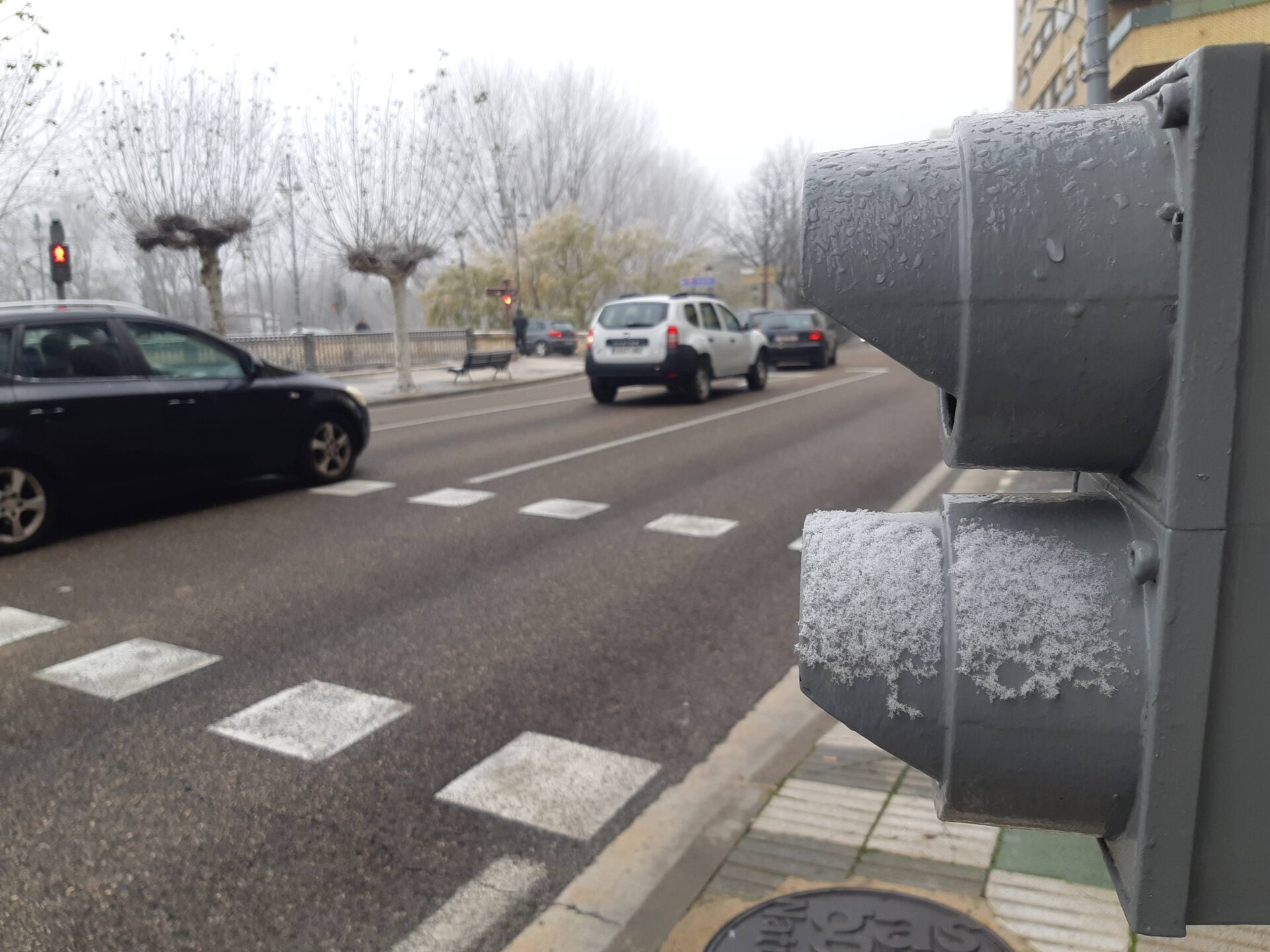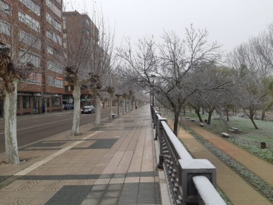 Crea esa apariencia de la nieve, pero sin los inconvenientes que generalmente esta genera. La cencellada que ha sufrido o disfrutado la ciudad de Palencia ha dejado bellas estampas en la misma. Especialmente en los parques y en la zona del río donde esos copos de niebla se han depositado y han aguantado más.