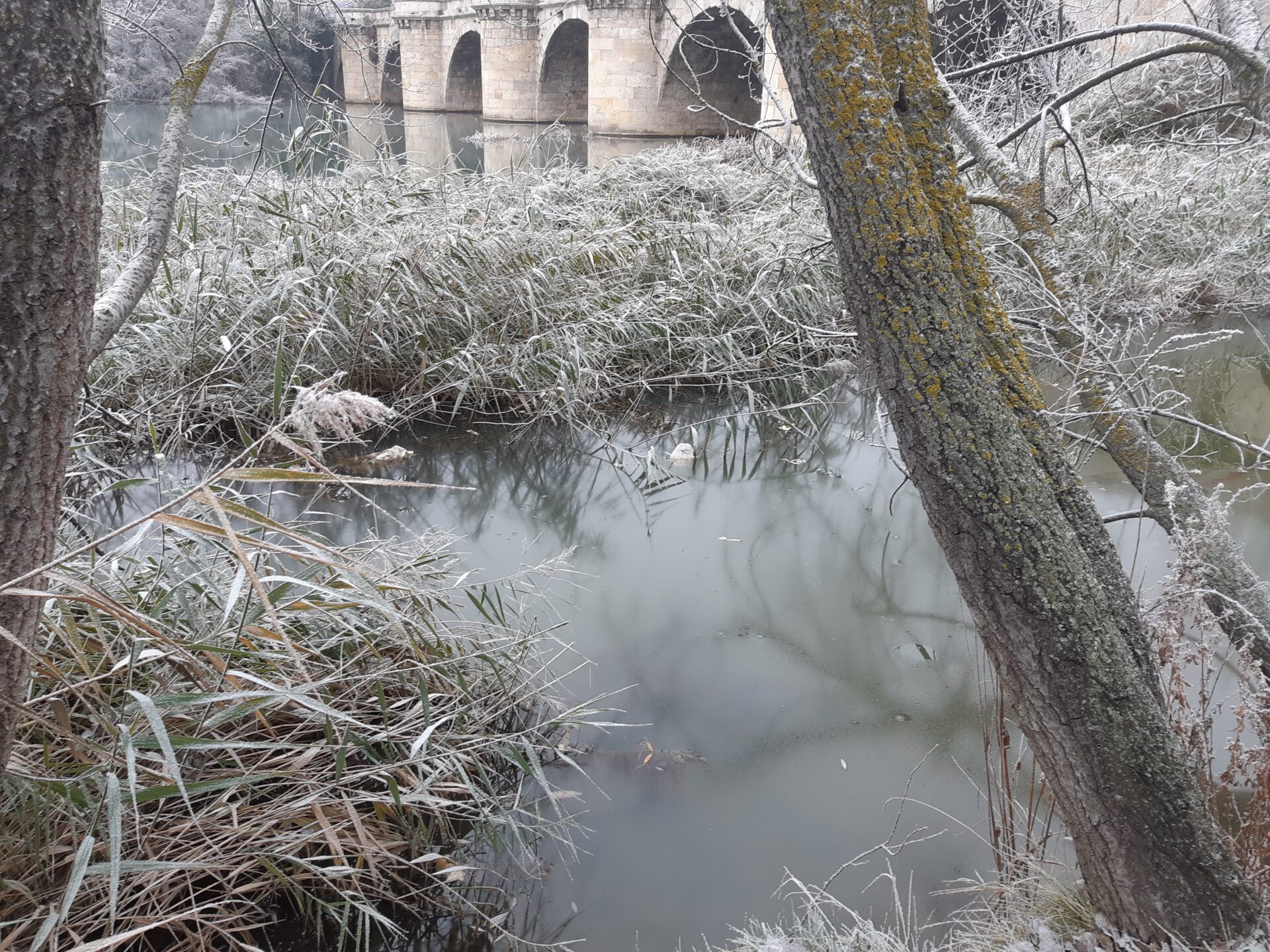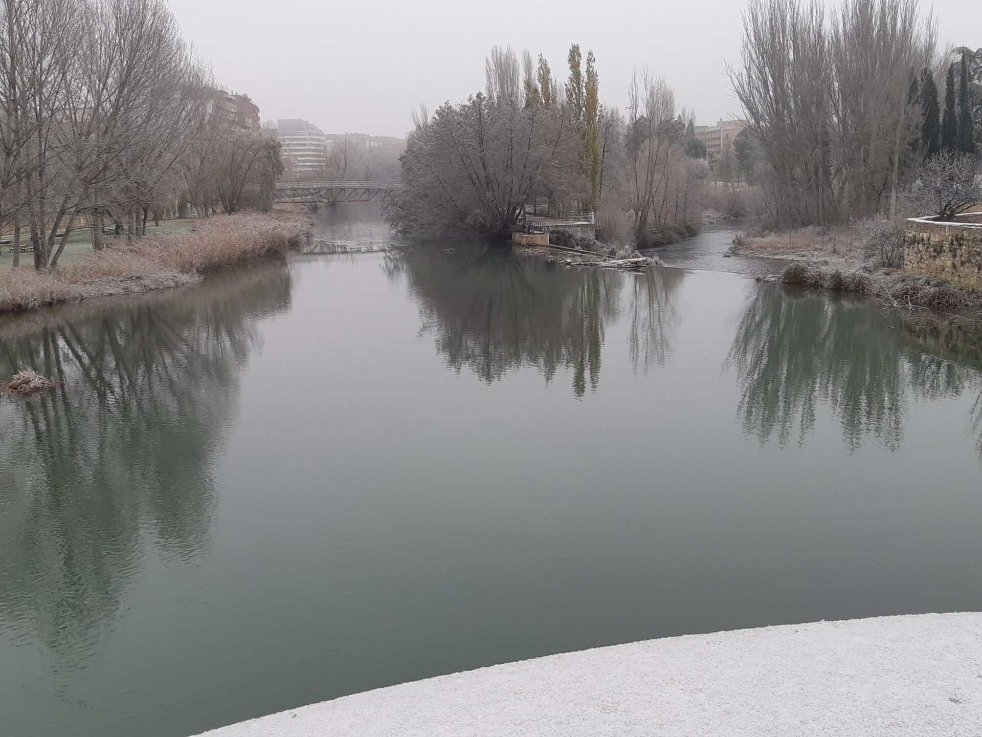 Esto ha provocado que incluso en las zonas más resguardadas del Río Carrión, la superficie del agua llegara a presentar una especie de granizado. Eso sí, lejos de ver las ya nada acostumbradas aguas heladas del río, ni siquiera de la dársena donde ajenos al frío, los patos y los cisnes campaban hoy a sus anchas sin valientes que nadaran a su lado.
