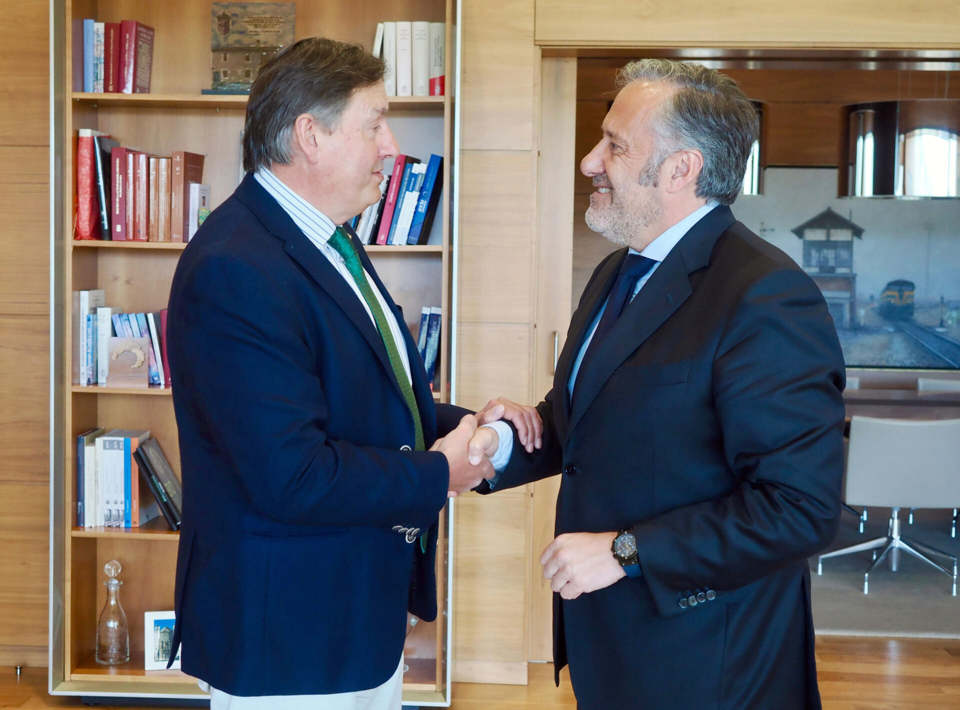 El presidente de las Cortes de Castilla y León, Carlos Pollán, recibió hoy al alcalde de la localidad palentina de Brañosera, Jesús Mediavilla, con motivo de las actividades conmemorativas que tendrán lugar en el municipio de la Montaña Palentina con motivo del 1.200 aniversario del Fuero de Brañosera.