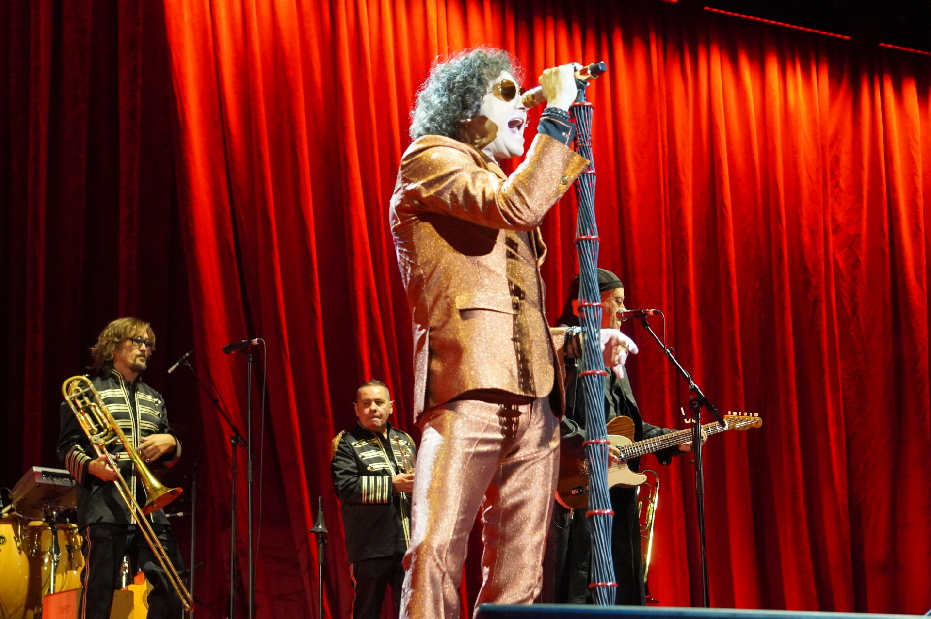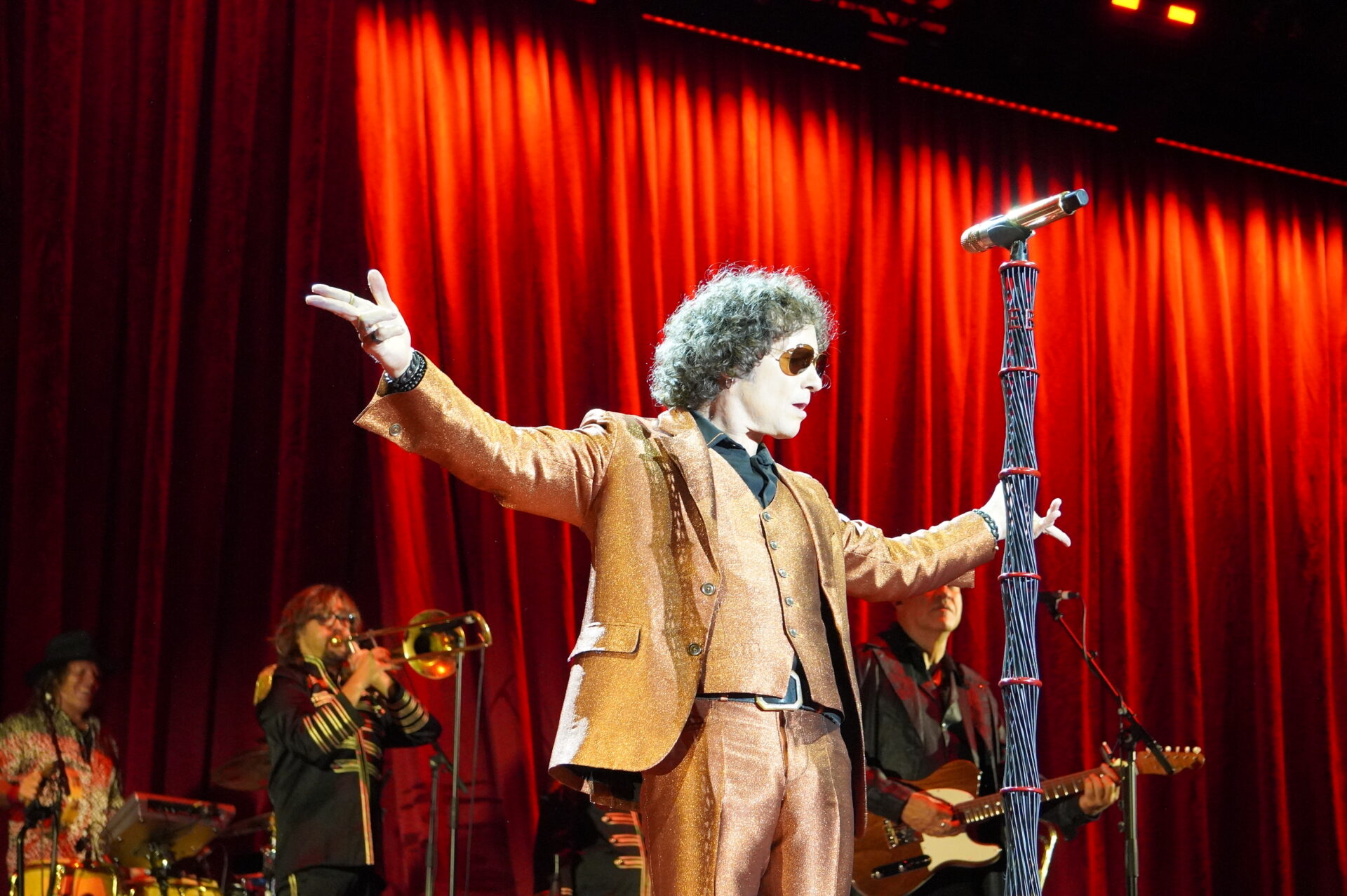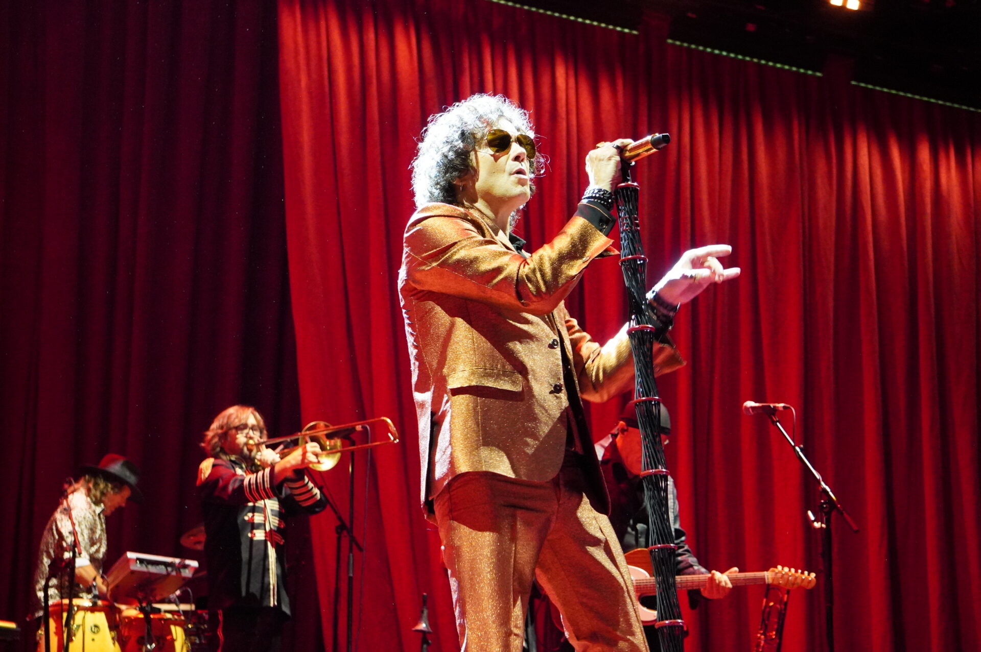 El concierto serpenteó entre la electricidad más cruda de Radical Sonora y la calidez mestiza de sus discos latinoamericanos. La banda sonó afilada, orgánica, con vientos, violín y percusiones que ampliaron el colorido del repertorio. Canciones como “De mayor”, “El extranjero” o “Sólo si me perdonas” encontraron en Madrid un público que no solo aplaudía, sino que cantaba de memoria cada verso, confirmando que Bunbury sigue teniendo un cancionero vivo, vigente y compartido.