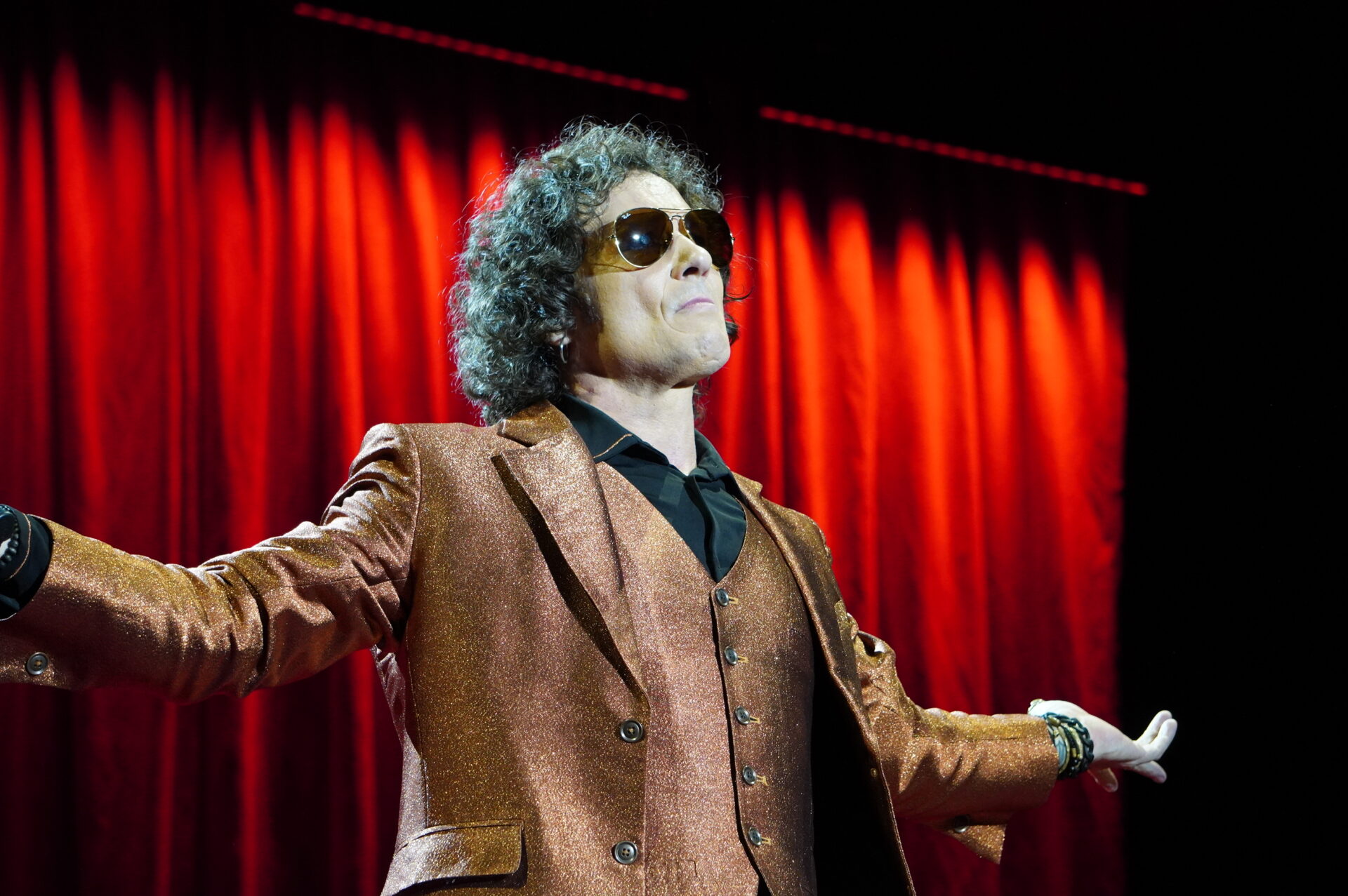 El tramo final guardaba una sorpresa. En los bises, casi al cierre, Bunbury regaló una novedad de esta gira que hasta ahora no había sonado en su tour: “El aragonés errante” una pieza que no tocaba en directo desde 2005. Fue recibida con entusiasmo, con esa mezcla de desconcierto inicial y entrega inmediata que solo un artista con su autoridad escénica puede provocar. Ese gesto le dio al concierto un aire de exclusividad que el público madrileño agradeció con una ovación larga y encendida.