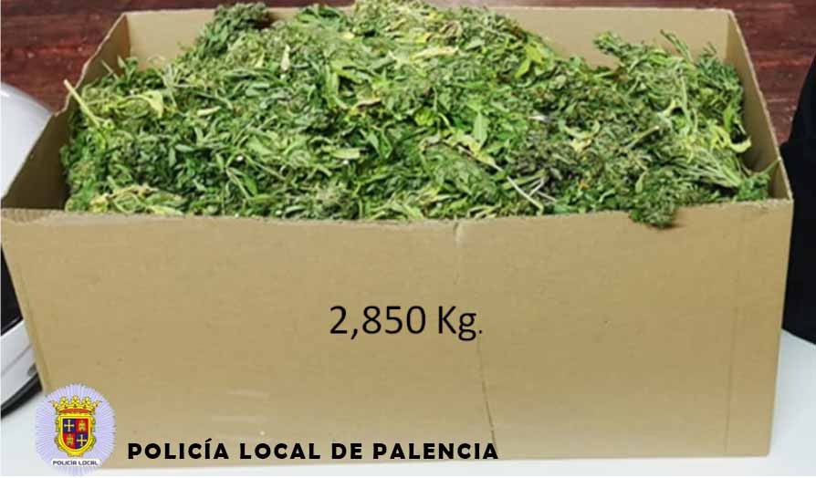 La Policía Local de Palencia interviene una caja con 2,850 kilos de marihuana en un control de tráfico en la Avenida de Santander