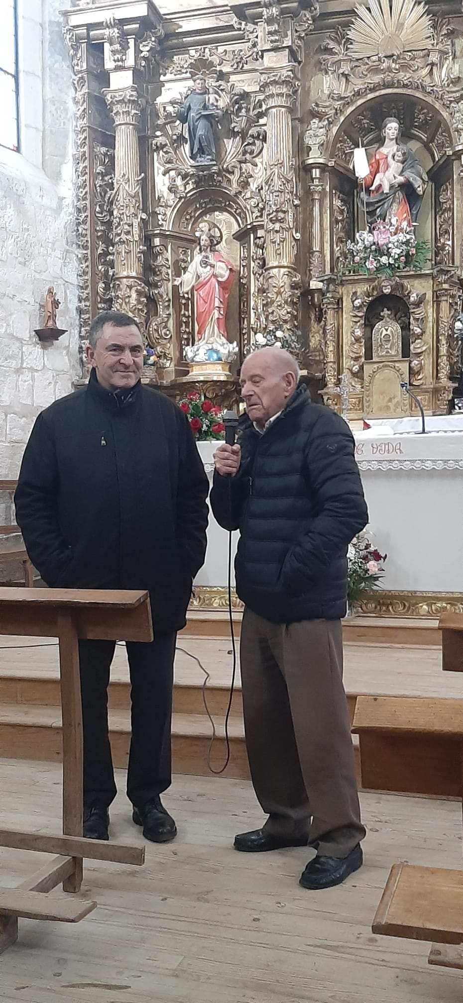 En un acto distendido en la iglesia, tanto el obispo, como el párroco dieron las gracias a todos los presentes por la acogida, y por el apoyo prestado durante los casi 65 años que lleva D. Erfidio en el pueblo, una vez que tiene prevista una nueva etapa en su vida, con Residencia en la Casa de la Iglesia en la capital.