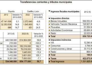 La recaudación en 2022 por tributos directos de los consistorios alcanza los 966,8 millones de euros y crece un 12,6% desde 2012; por indirectos...