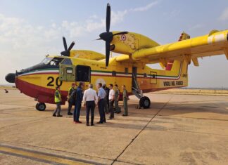 Llegan a Matacán dos hidroaviones italianos que se sumarán a las labores de extinción de los fuegos en el norte de España