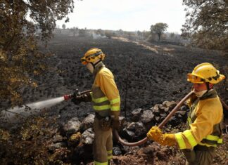 Las rachas de viento y el calor complican la extinción del incendio de Navaluenga