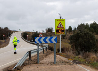 Movilidad implanta en dos carreteras sorianas señales inteligentes para detectar ciclistas