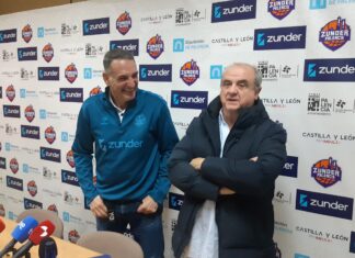 El técnico del Zunder Palencia, acompañado por Fran Hernández, se muestra satisfecho con la manera de competir ante el Baskonia