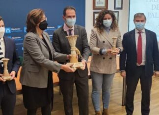 La presidenta de la Diputación, Angeles Armisén, acompañada por el alcalde capitalino Mario Simón; han dado a conocer las candidaturas de los Premios del...