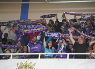 El morado tiñe el Pisuerga: la afición palentina arropa al Súper Agropal Palencia en Valladolid
