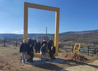 Un gran marco amarillo recuerda el cierre de la térmica de Velilla y que el municipio apuesta por la energía no contaminante