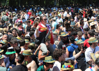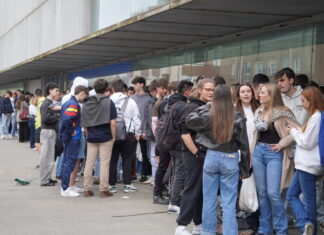 Cientos de jóvenes, pero menos que en años anteriores, se agolpan ante las taquillas de La Balastera, para conseguir una de las pulseras negras,...
